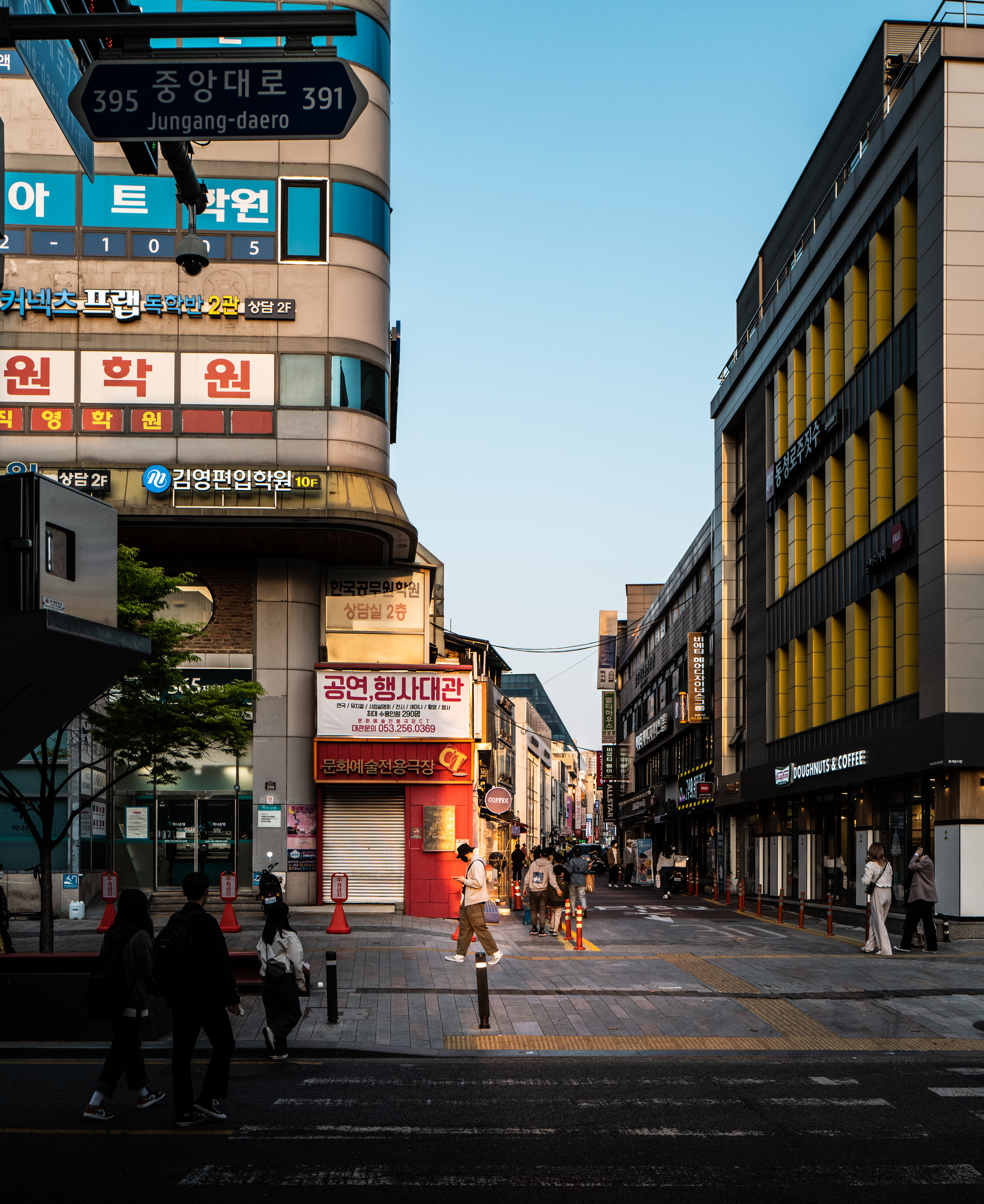 코로나로 인해 극장은 문을 닫았지만 저녁 햇살이 극장입구를 비추어 어떤 이를 영화의