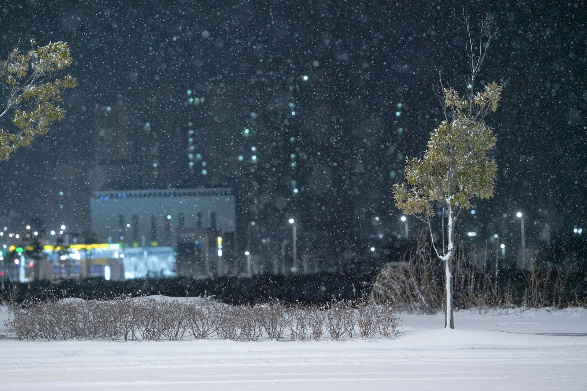 인적이 드문 곳, 늦은 시간의 눈 내리는 밤