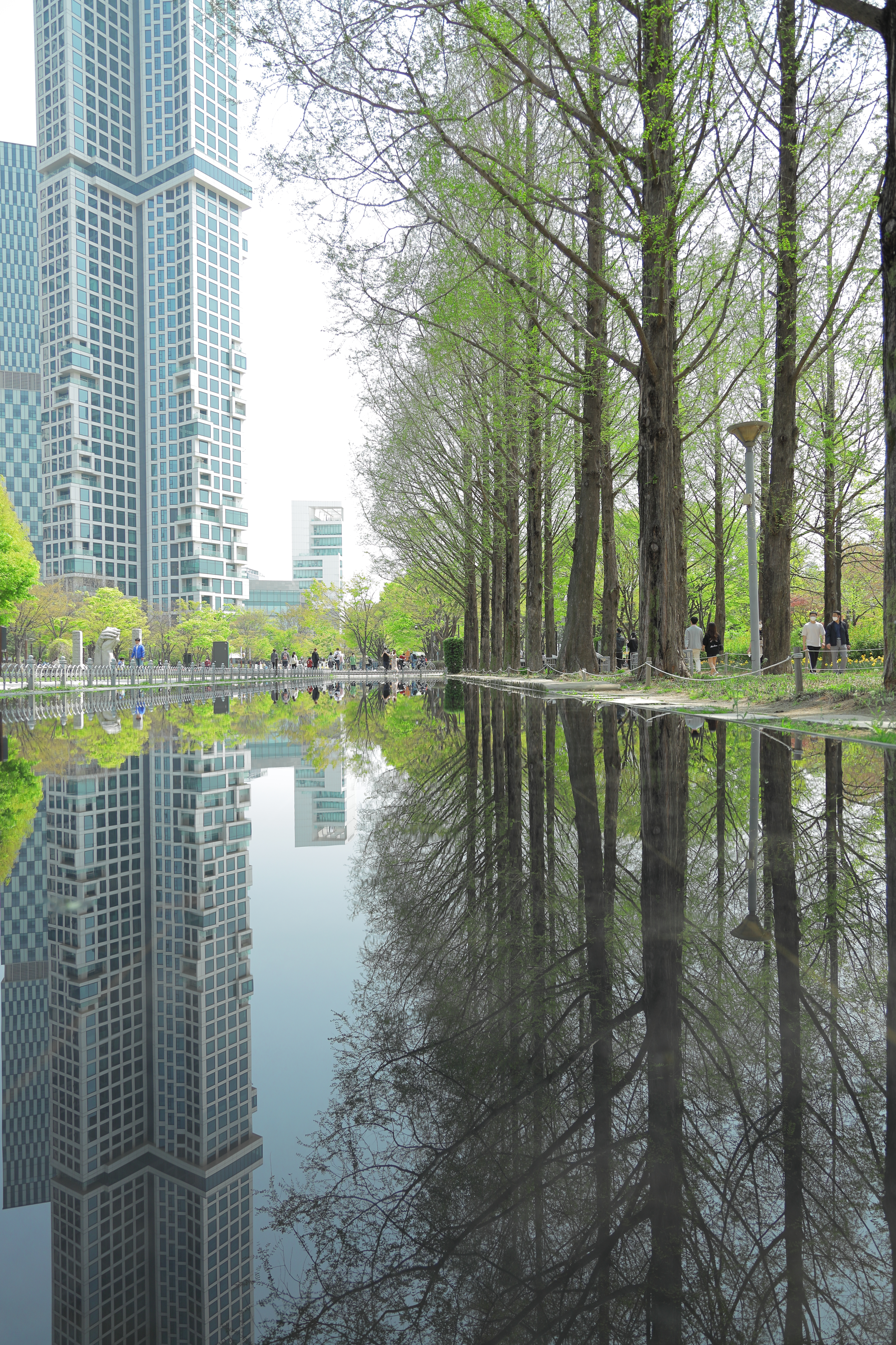 서울숲의 거울연못에서 반영사진을 찍어보았습니다. 영화 인셉션의 한 장면이 떠오르는 샷이었습니다.