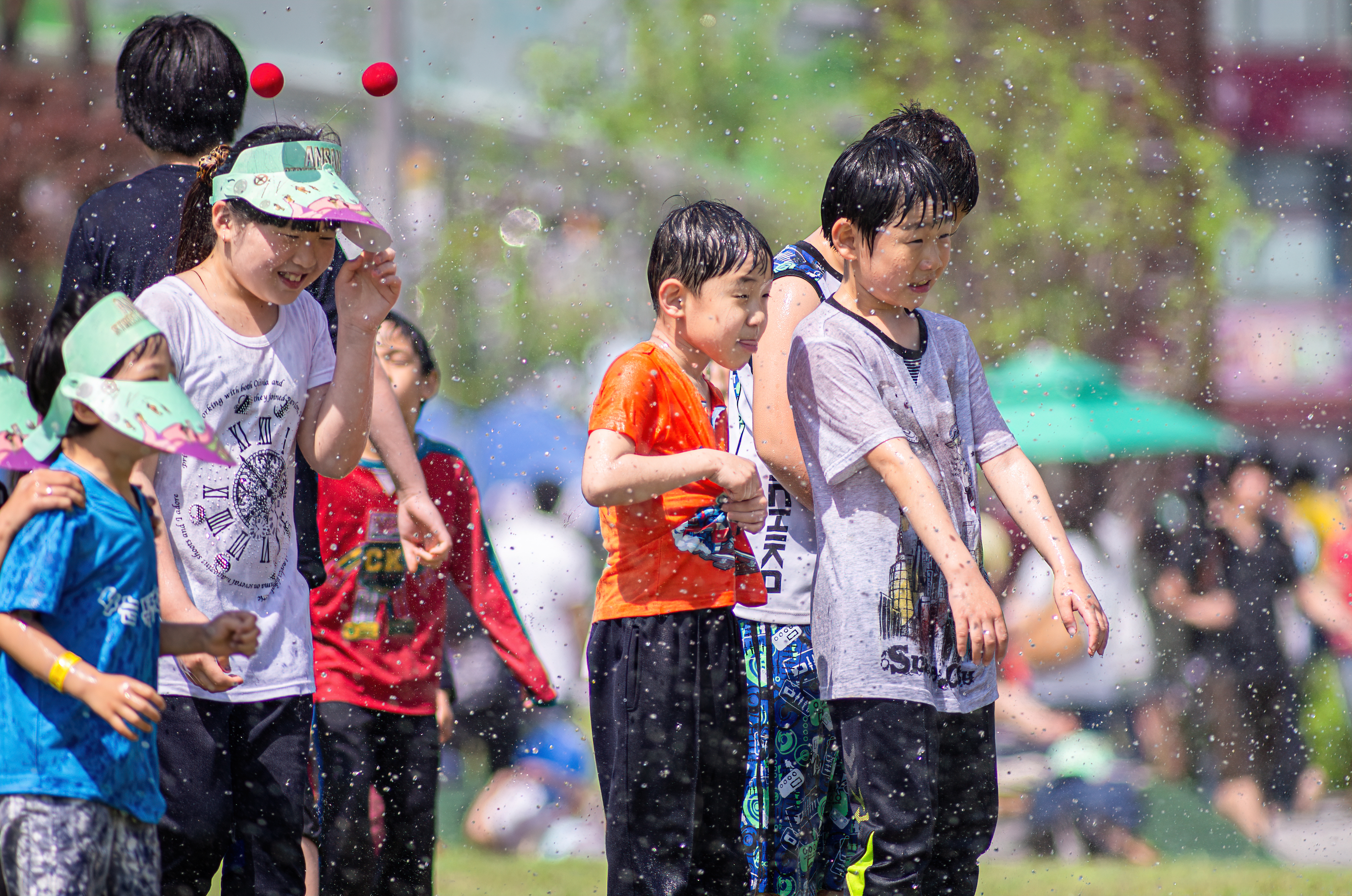 어린이날 물놀이중인 해맗은 아이들 모습입니다.