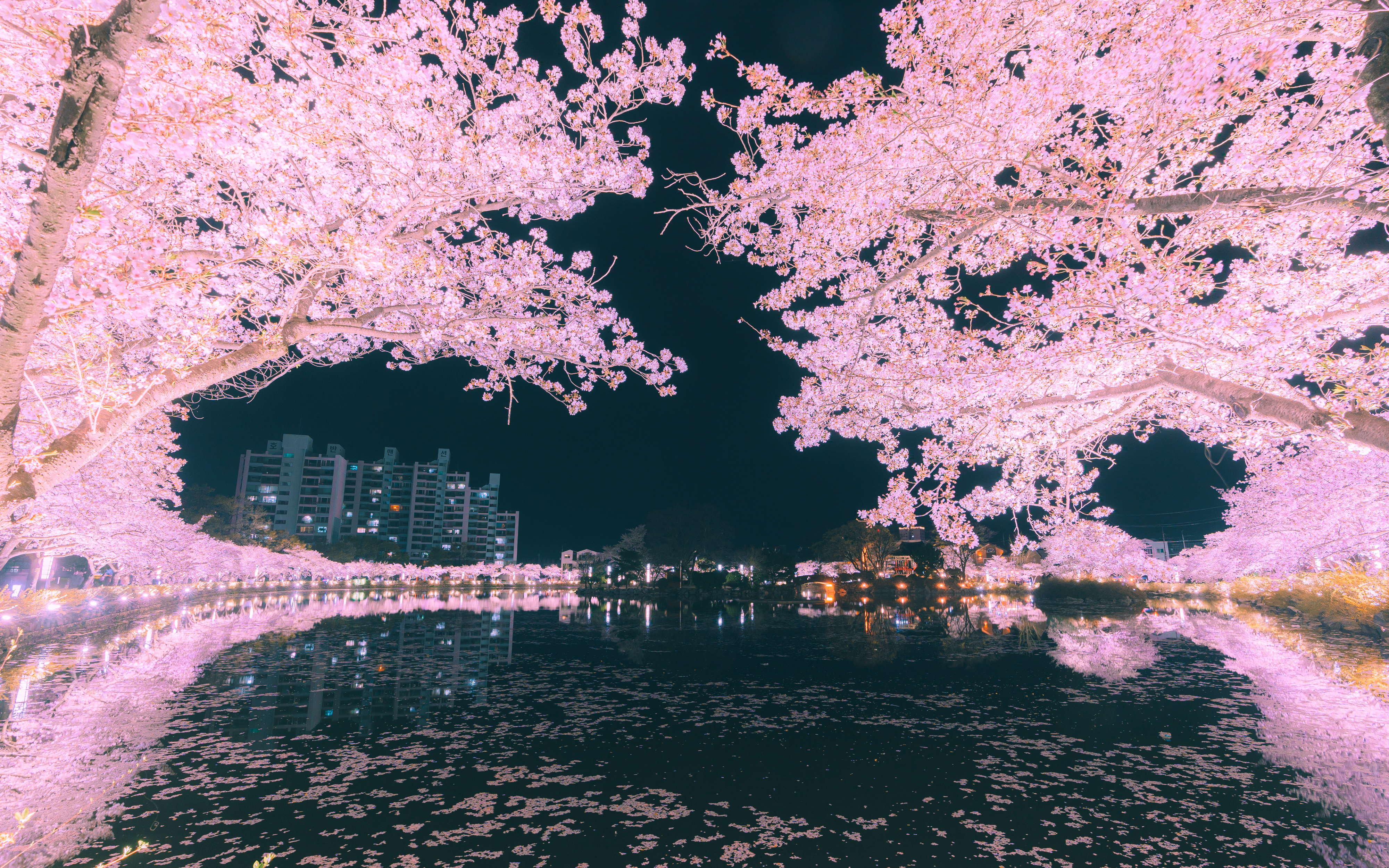 김천 연화지의 봄조금은 늦은감이 있었으나, 오히려 더 나은 봄을 볼 수 있었다.낙화된 꽃과 함께 반영되어 있는 모습은 봄의 밤 풍경중 압권이라고 생각이 드는 곳