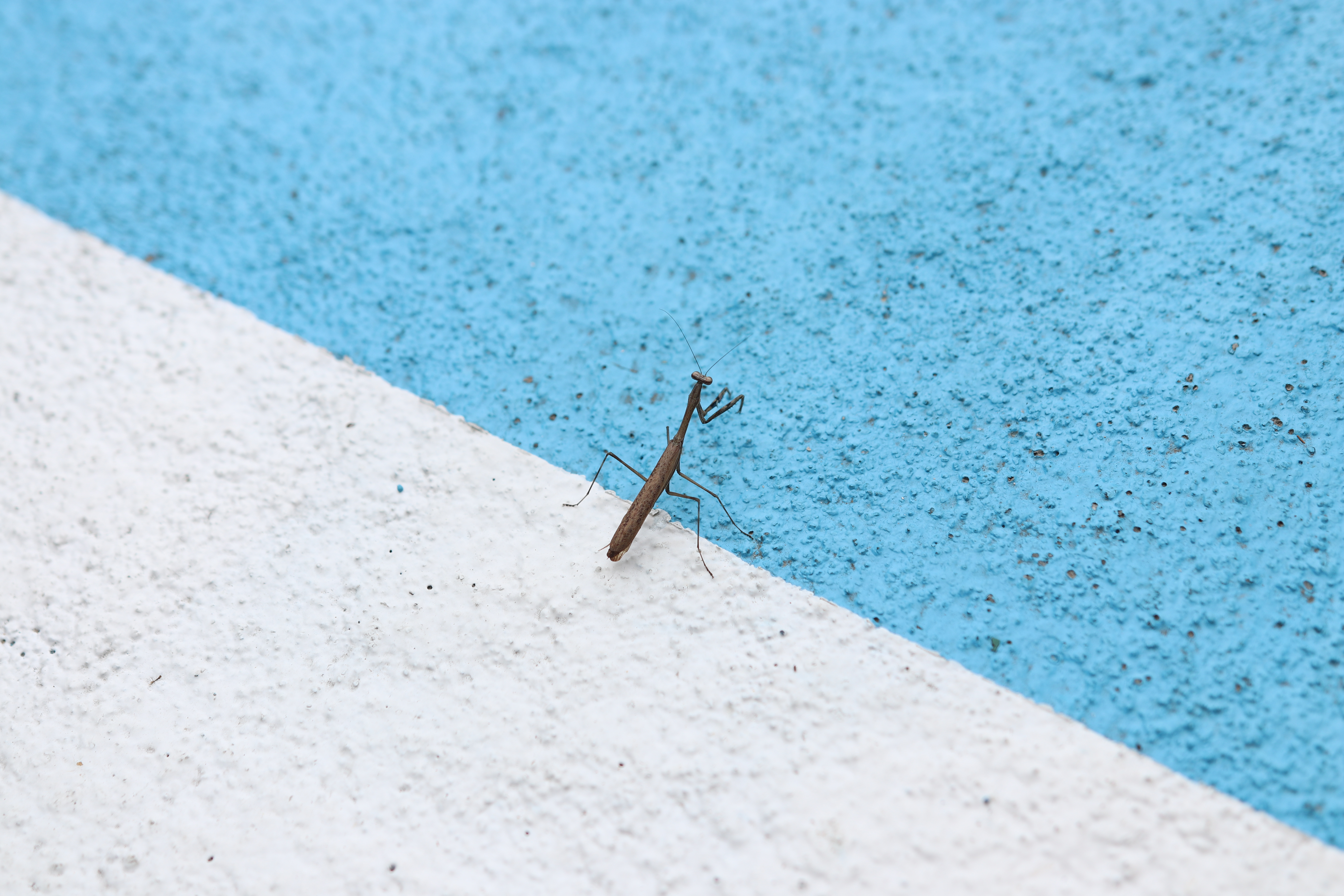 대학교 주차장 내려가는 길에 선을 넘어가는 사마귀를 찍어 봤습니다.
