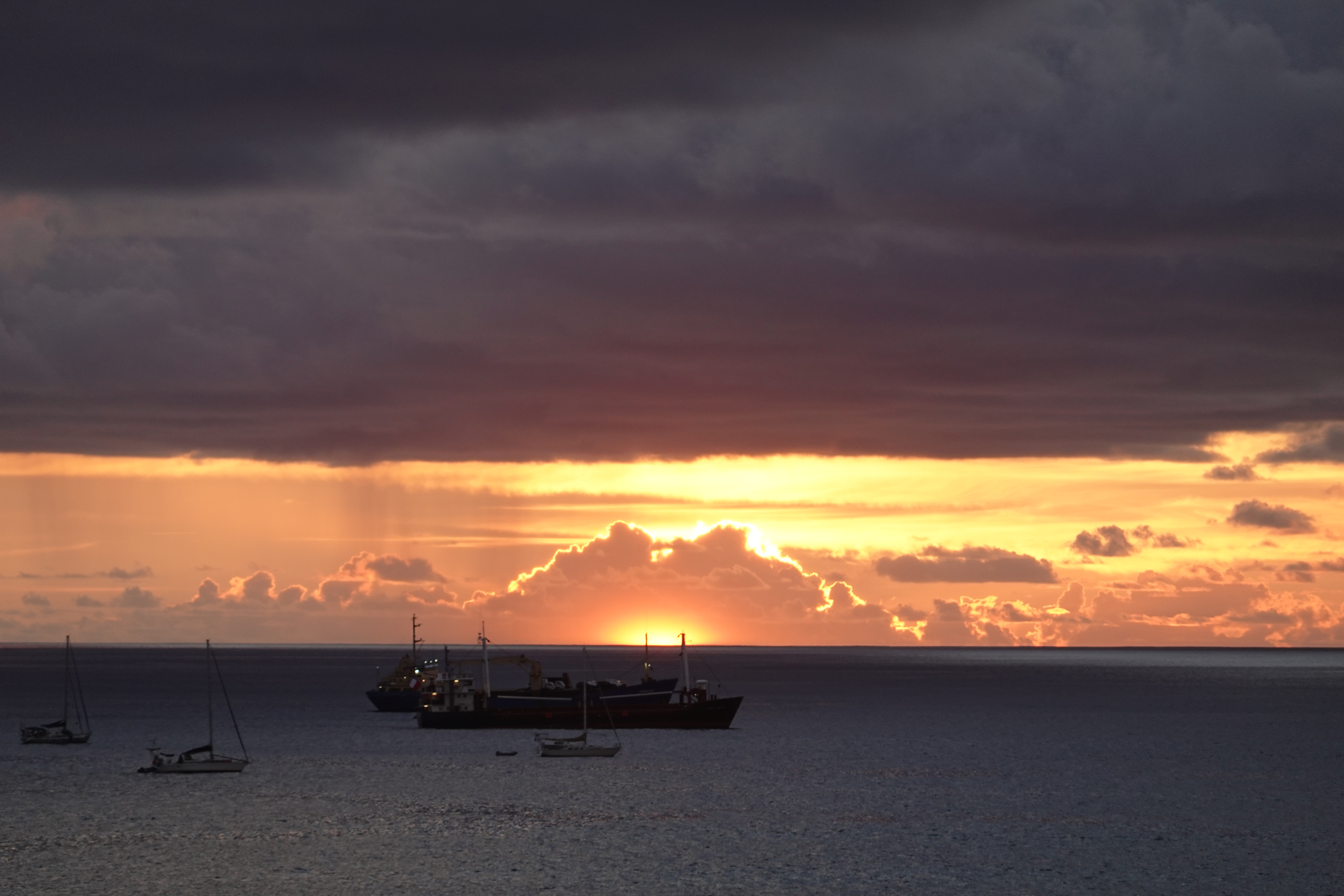 먹구름 밑으로 비가 내리는 모습과 함께 저 멀리 구름 속 태양이 지는 장면을 담아보았다.