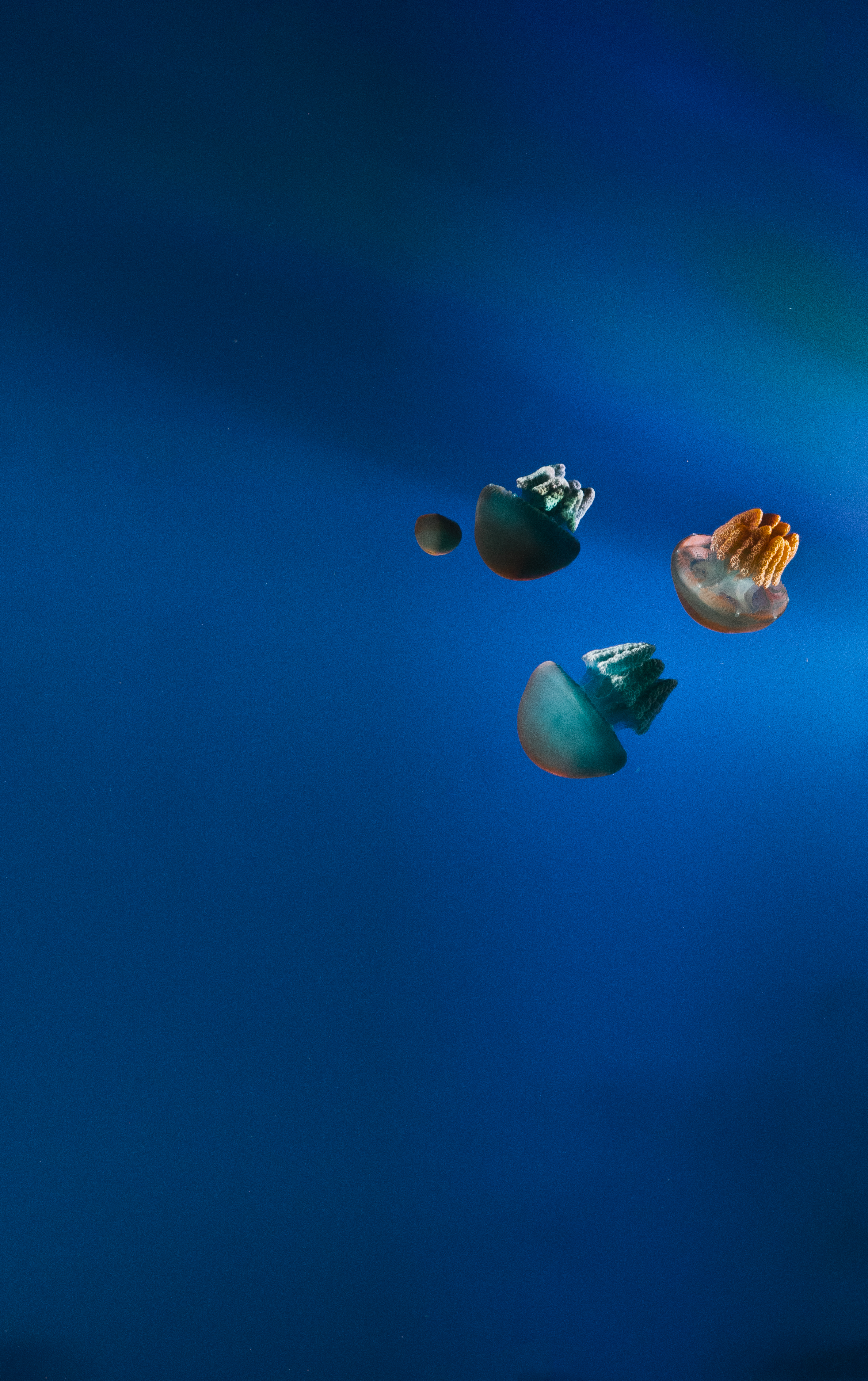 2019년도 즈음에 혼자 갔었던 코엑스 아쿠아리움에서 우연히 찍게 된 사진입니다.수족관 안의 조명이 파란색으로 바뀌는 순간 심해에서 유영하는 해파리 같다라는 생각이 들어, 그 자리에서 촬영 뒤 바닷속 같은 연출을 의도로 편집하게 되었습니다.