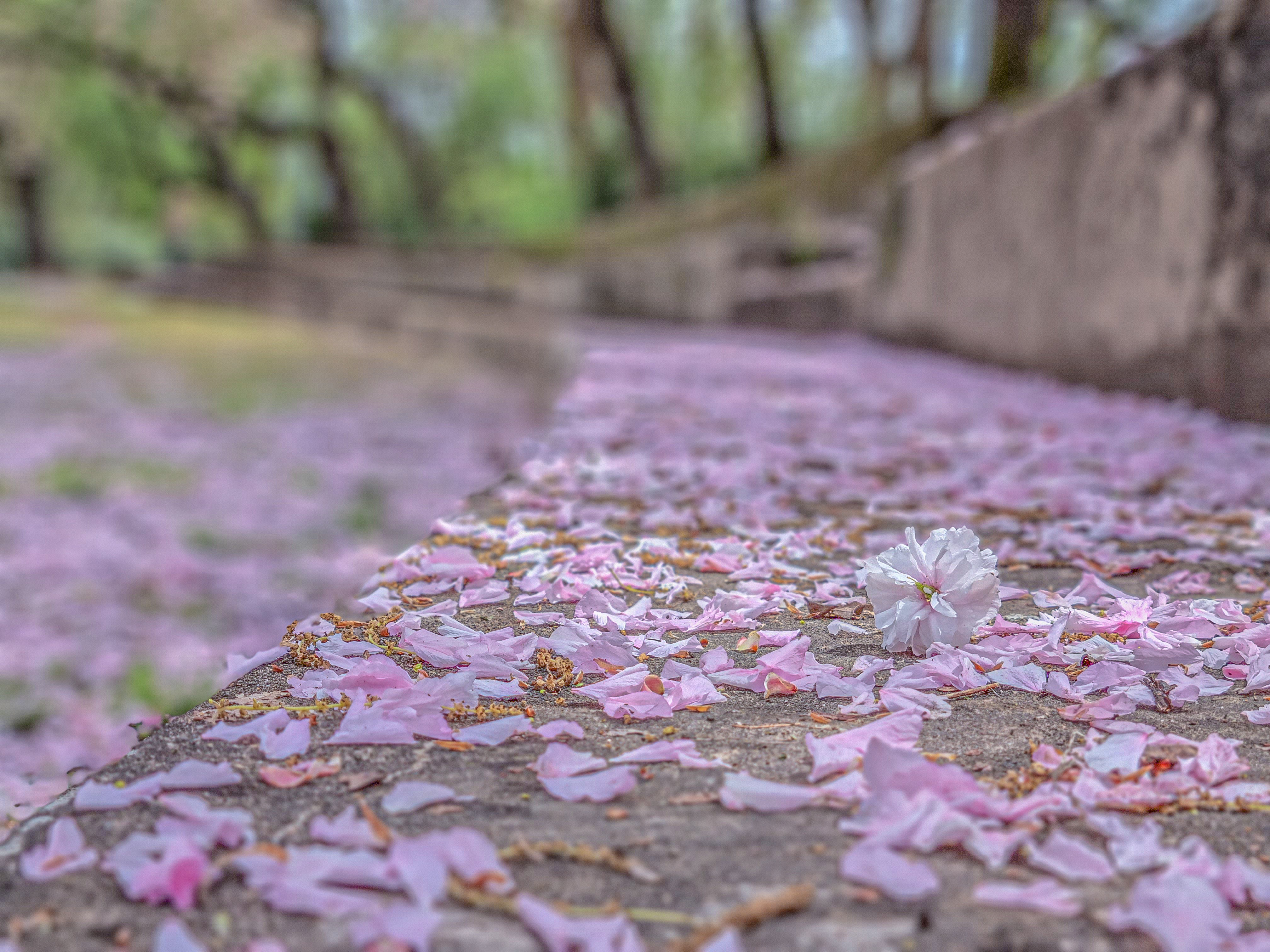 꽃잎이 떨어진 꽃 한송이 겹벚꽃 사진
