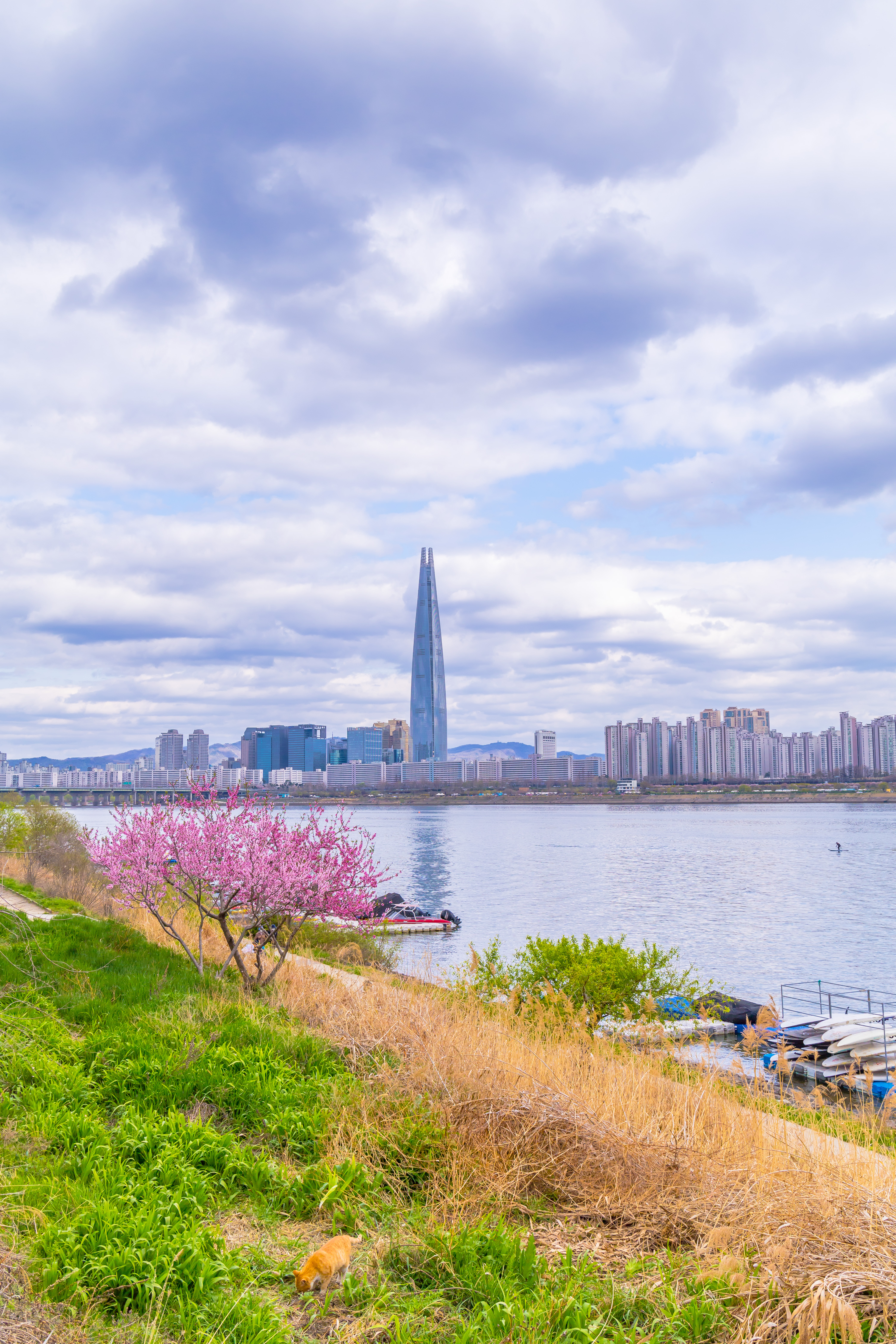 봄날의 따스한 햇살과 한강 바람을 쐬러 나온 낭만고양이