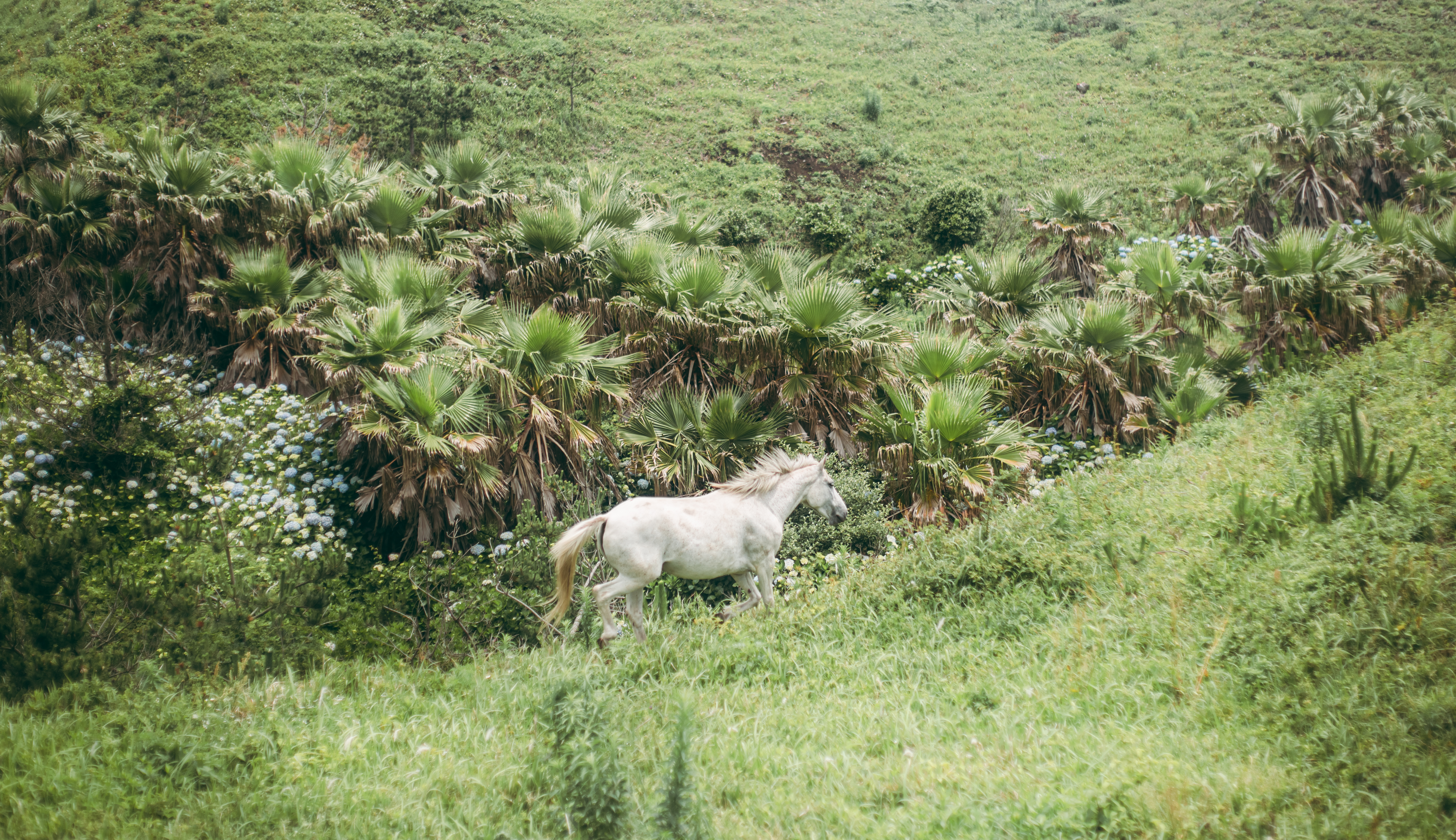 마치 유니콘같은 하얀 말이 송악산을 뛰노는 장면