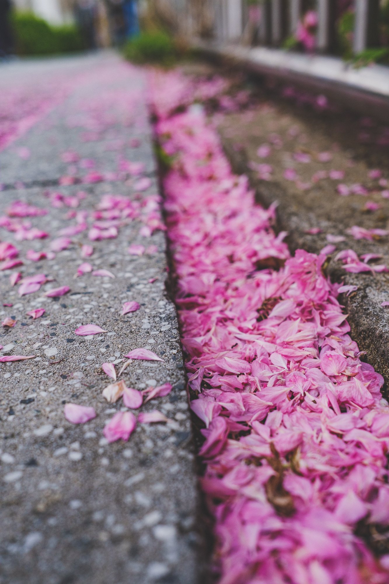 꽃잎이 길거리에 예쁘게 떨어져있는 모습을 담아봤습니다.
