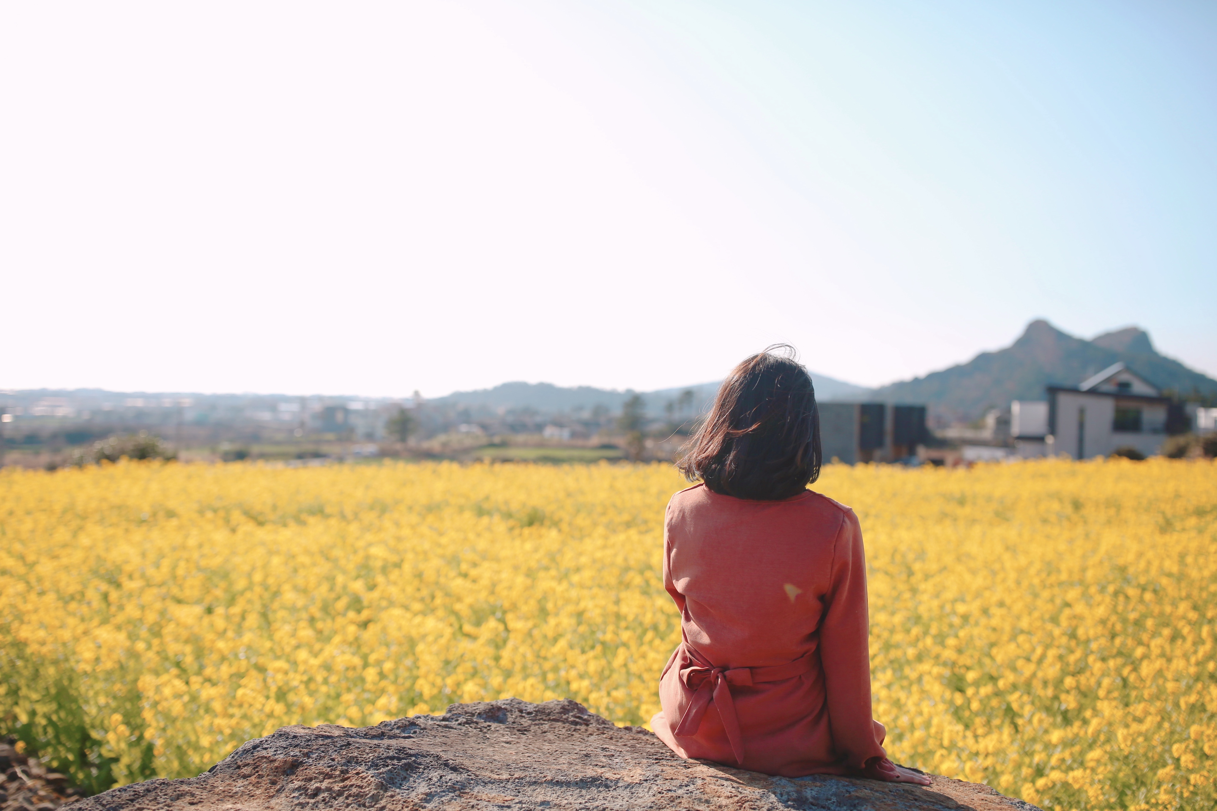 제주도 산방산 위쪽 예쁜 유채꽃밭에서 스냅사진 찍었어요