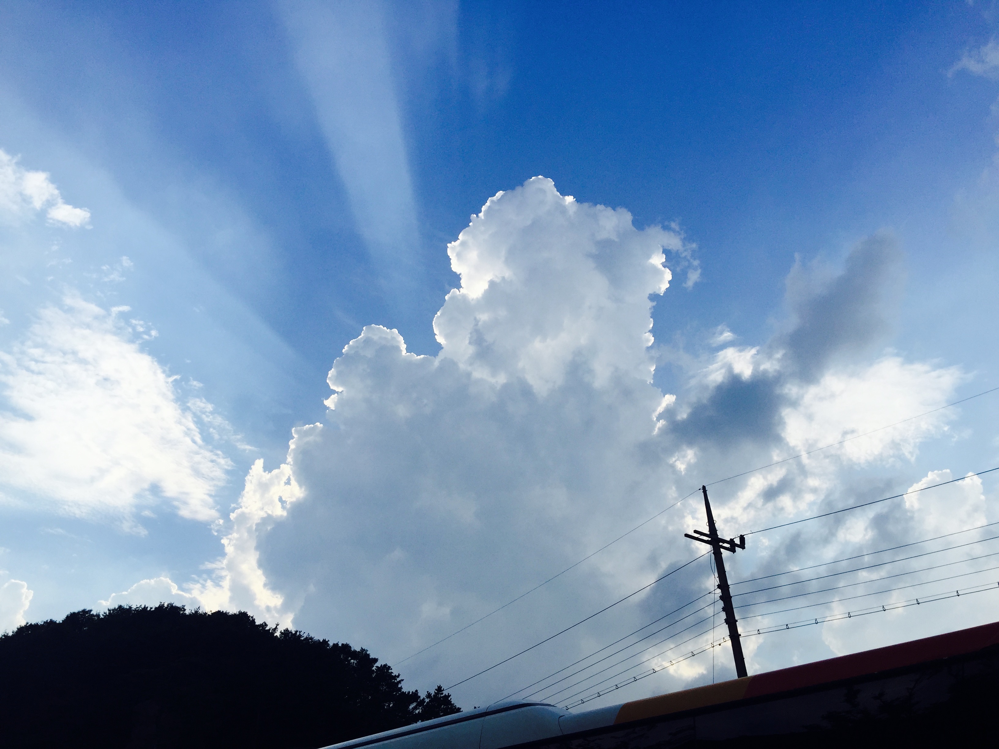 길을 가던중, 해를 가린 커다란 구름 틈새로 빛을 뿜어내는 모습을 담은 사진입니다.