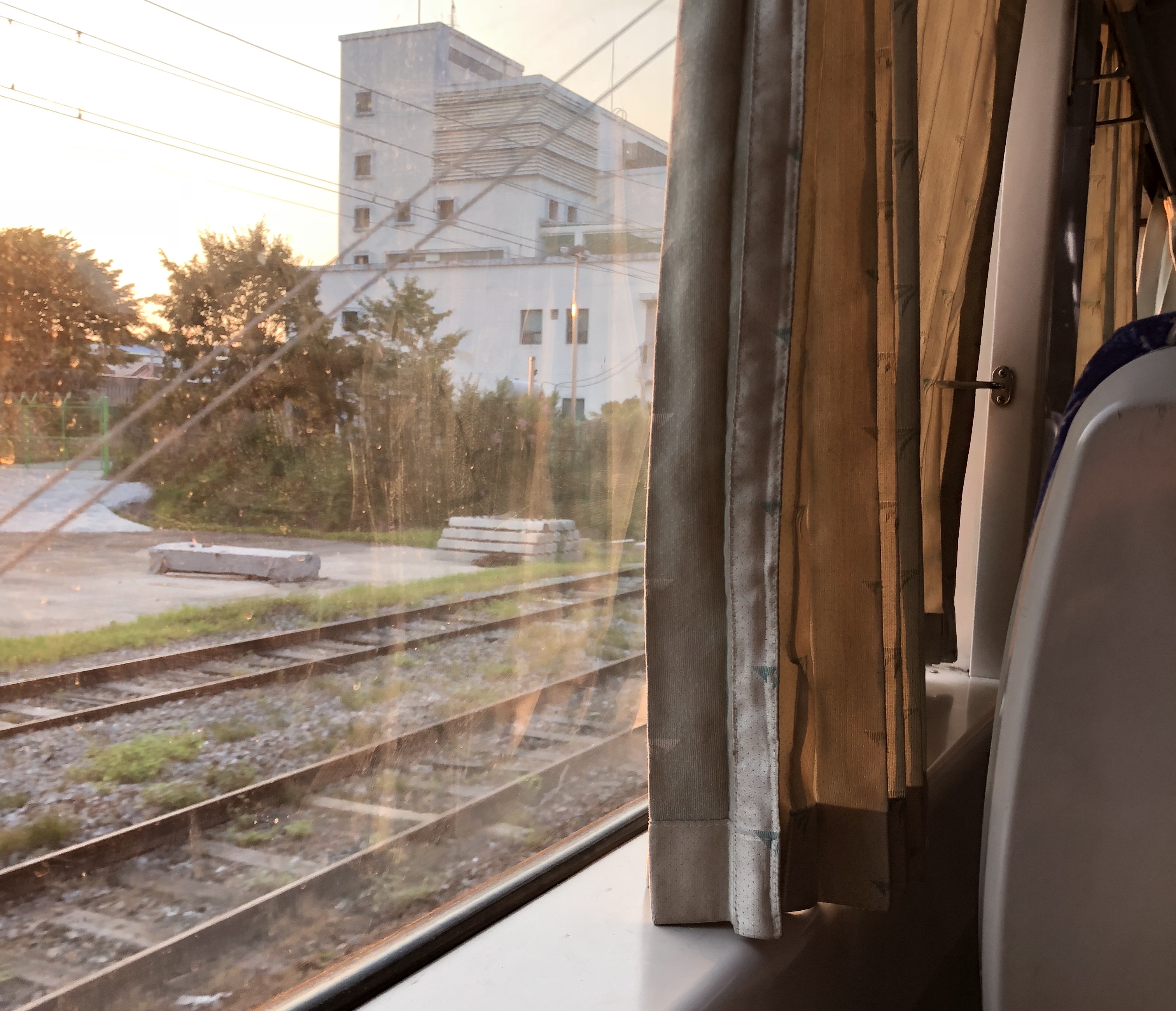 열차안으로 들어오는 석양빛을 담은 사진입니다.