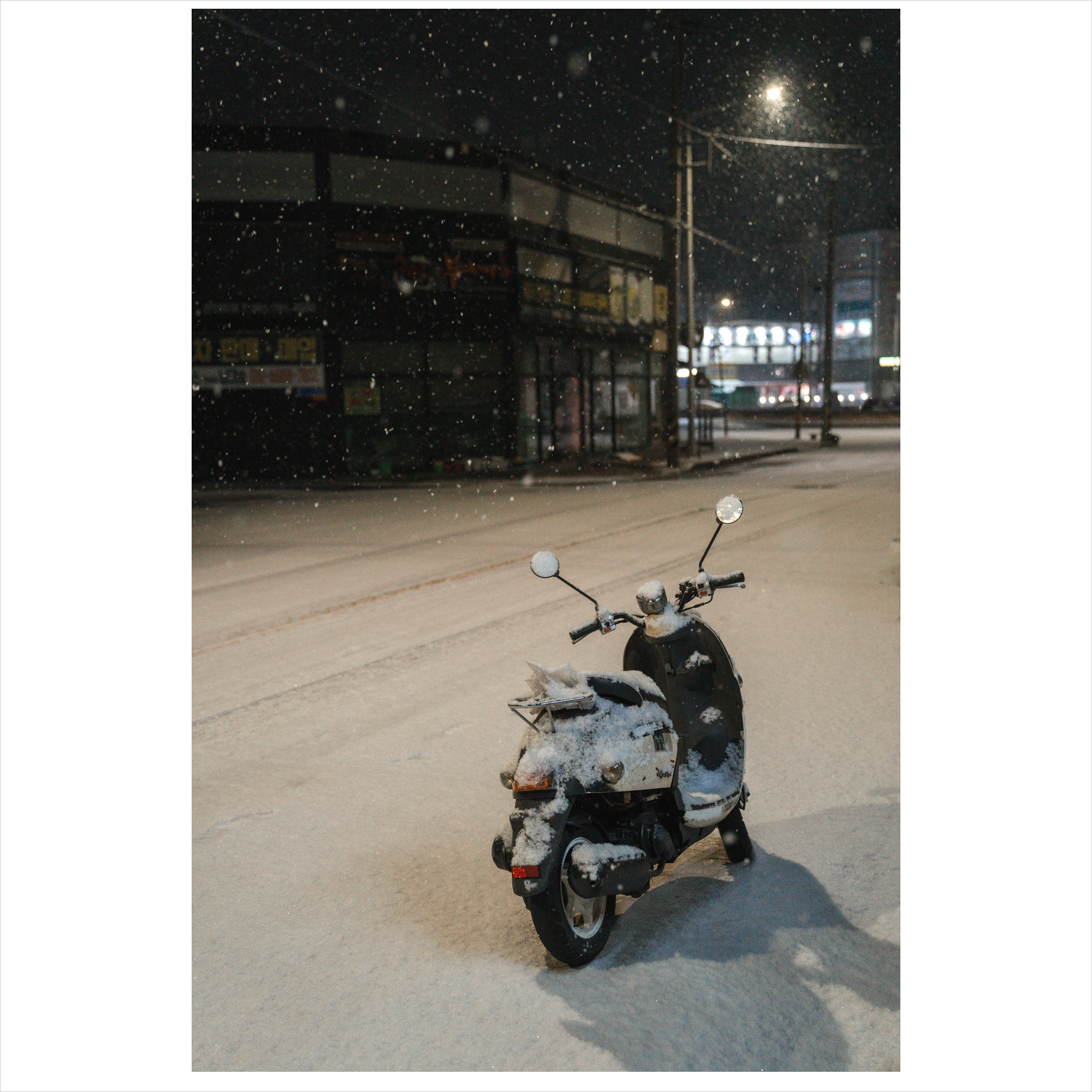 눈 오는날 눈을 맞으면 자리를 지키는 스쿠터 촬영