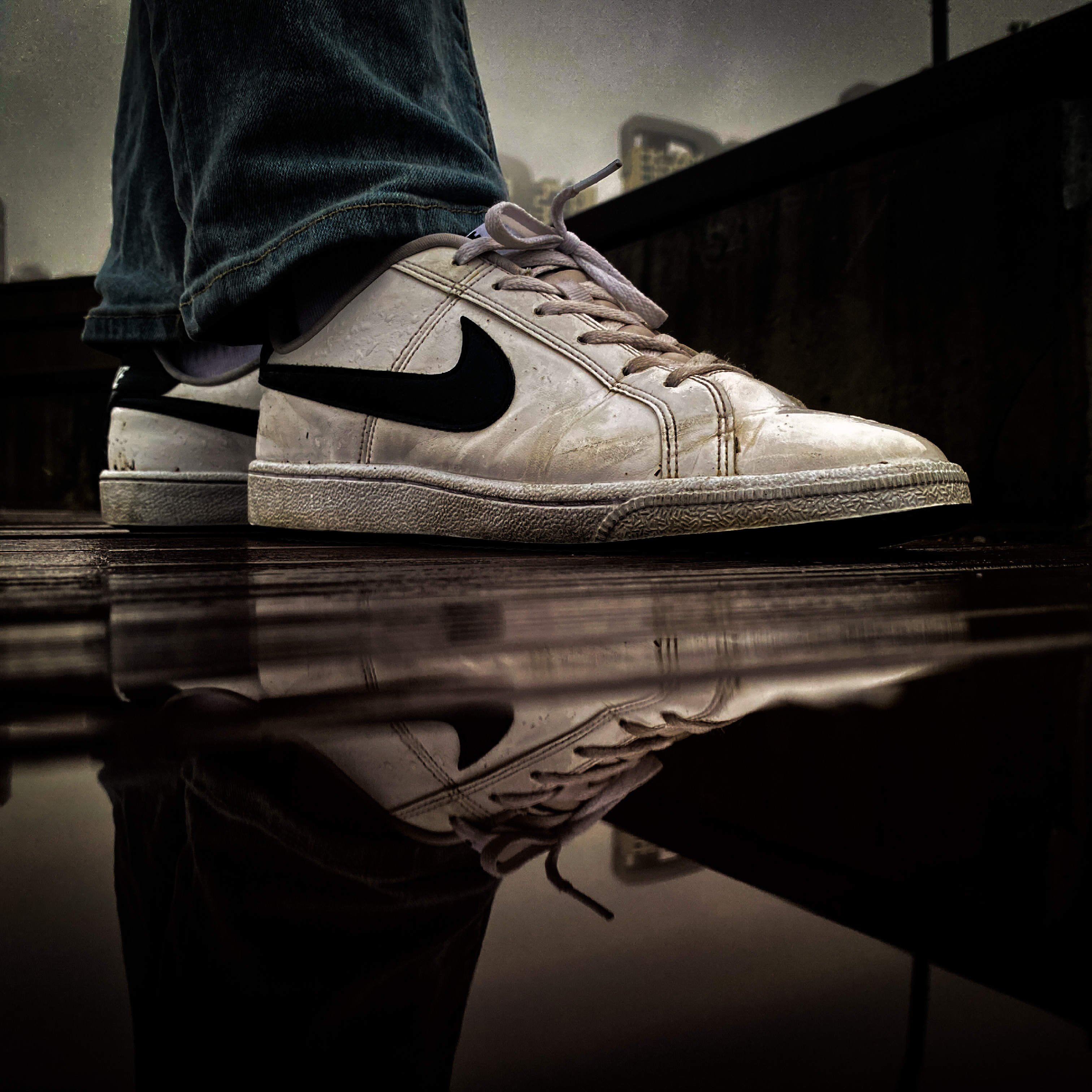 비오는 날 찍은 신발