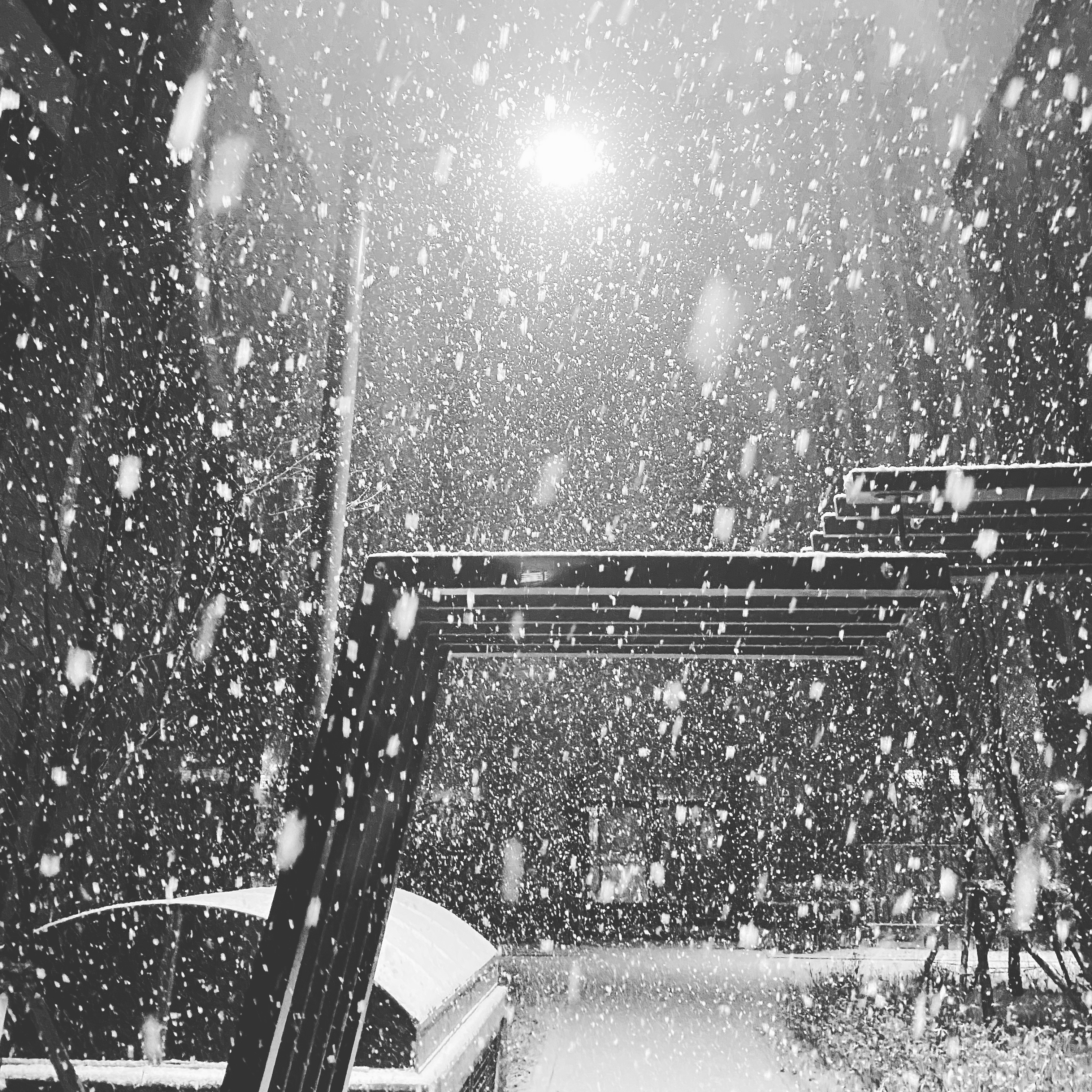 전봇대 아래에서 맞는 눈