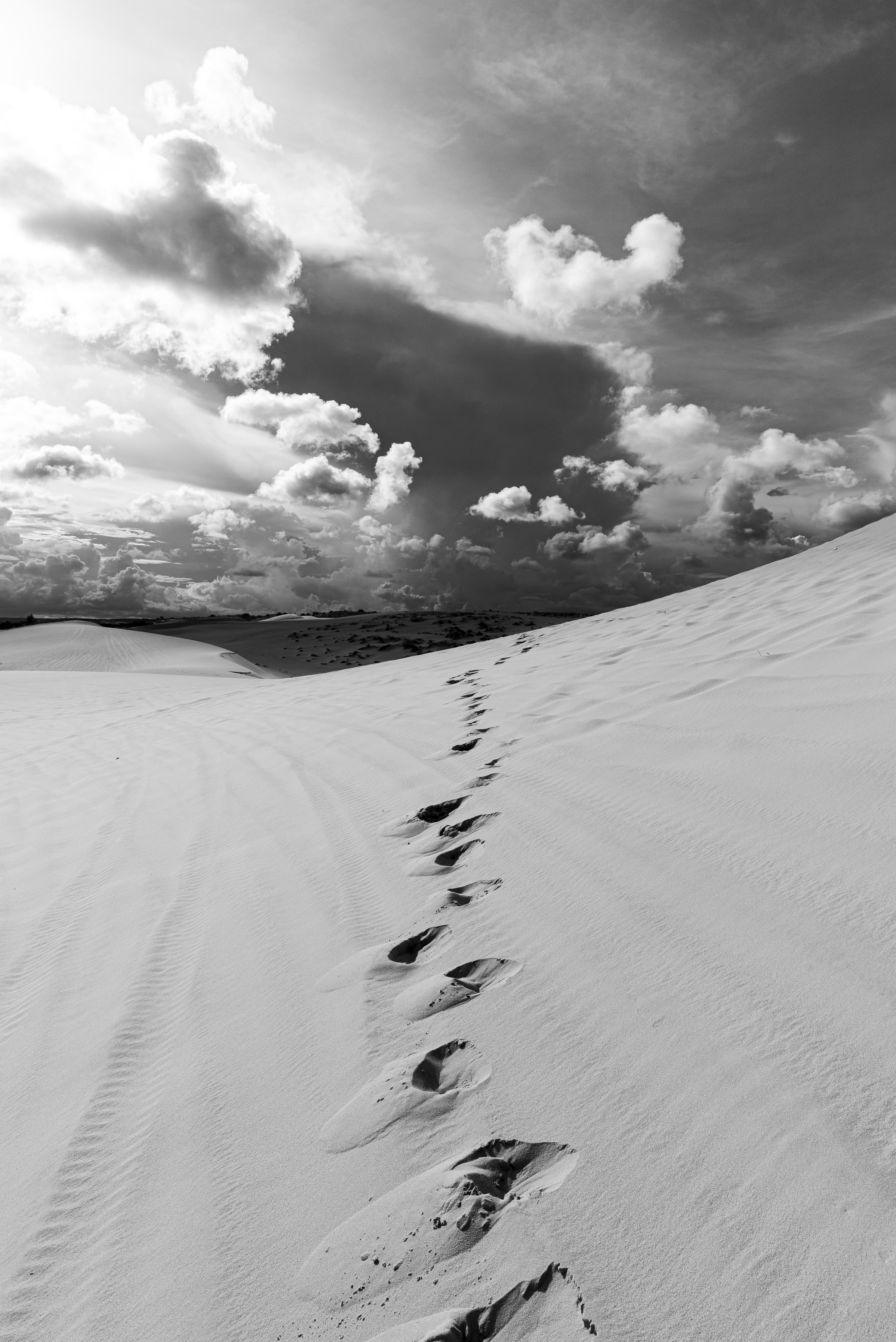 무이네의 화이트 샌듄에서 색다른 여행 사진을 찍기위해 내가 걸어온 발자국과 길을 촬영한 사진입니다.