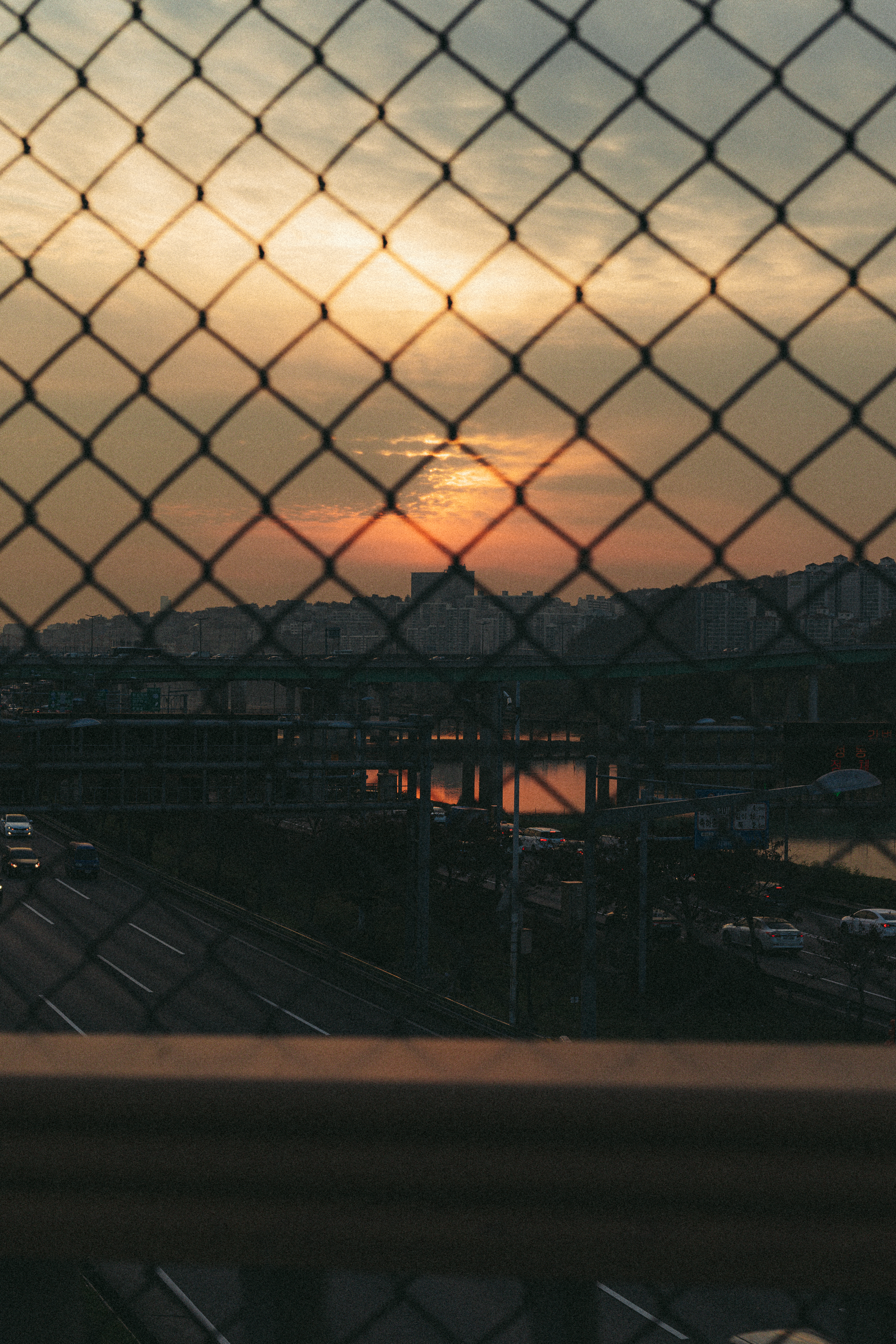 서울의 한 대교에서 찍은 해질녘의 감성사진입니다. 필름사진처럼 보정하여 감성을 더했습니다.