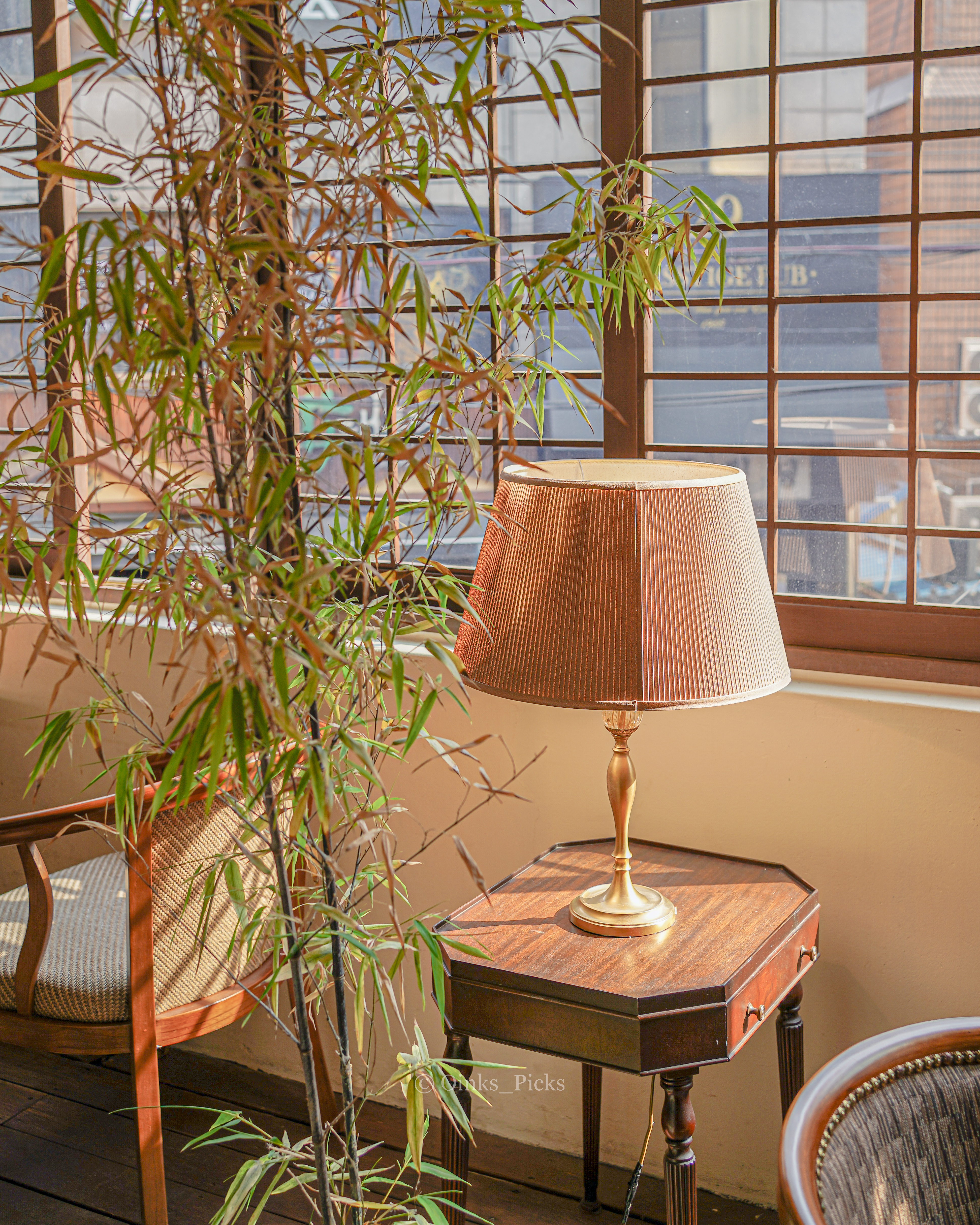 강남 한 카페에서 햇살이 내리 쬐는 오죽 나뭇잎을 바라보자니 한 숨 돌리겠구나 싶다