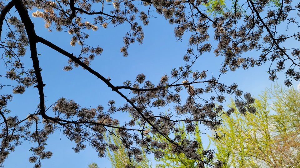 파란 하늘과 벚꽃