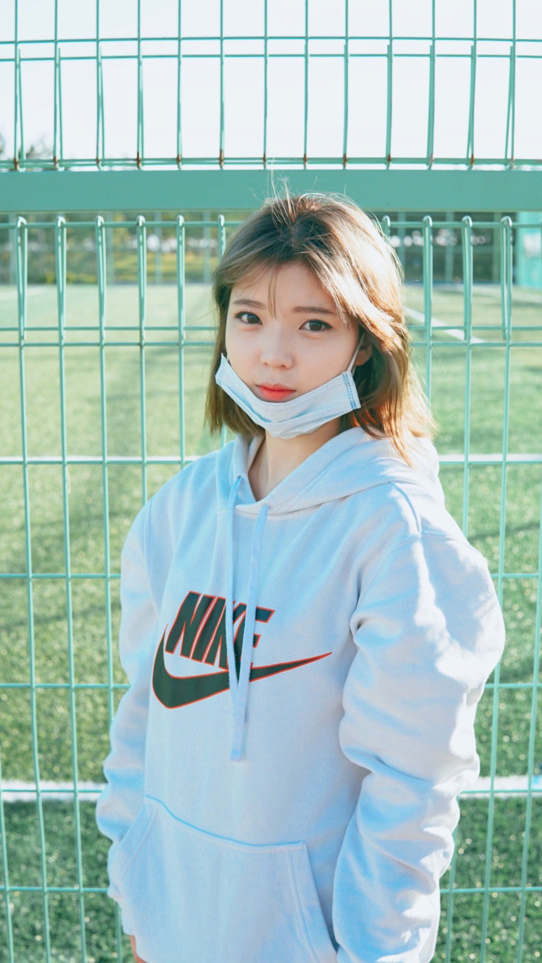 푸르른 잔디 밭 앞에서