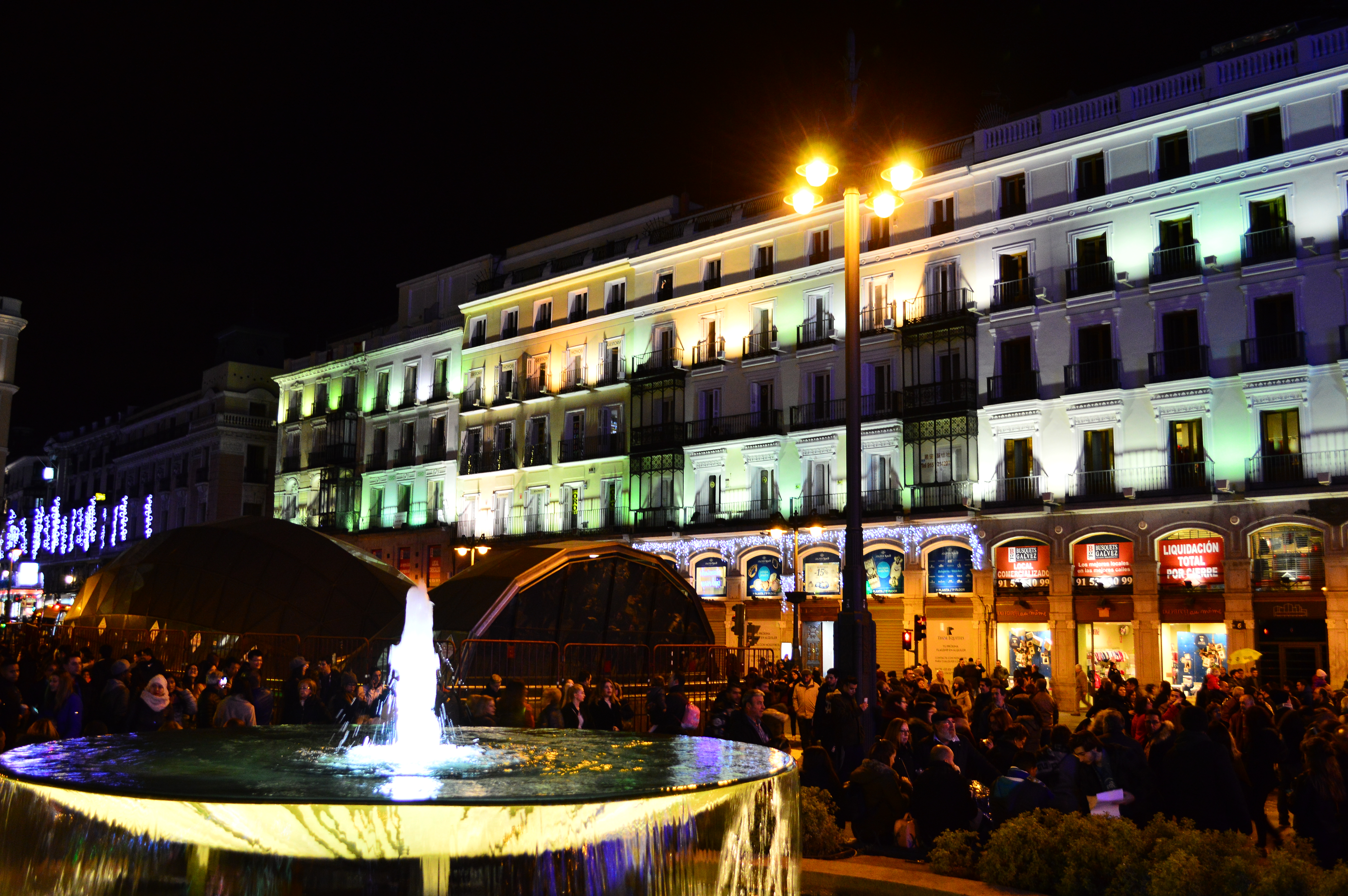 크리스마스 이브 날 밤 마드리드 솔 광장의 모습을 담아보았습니다.