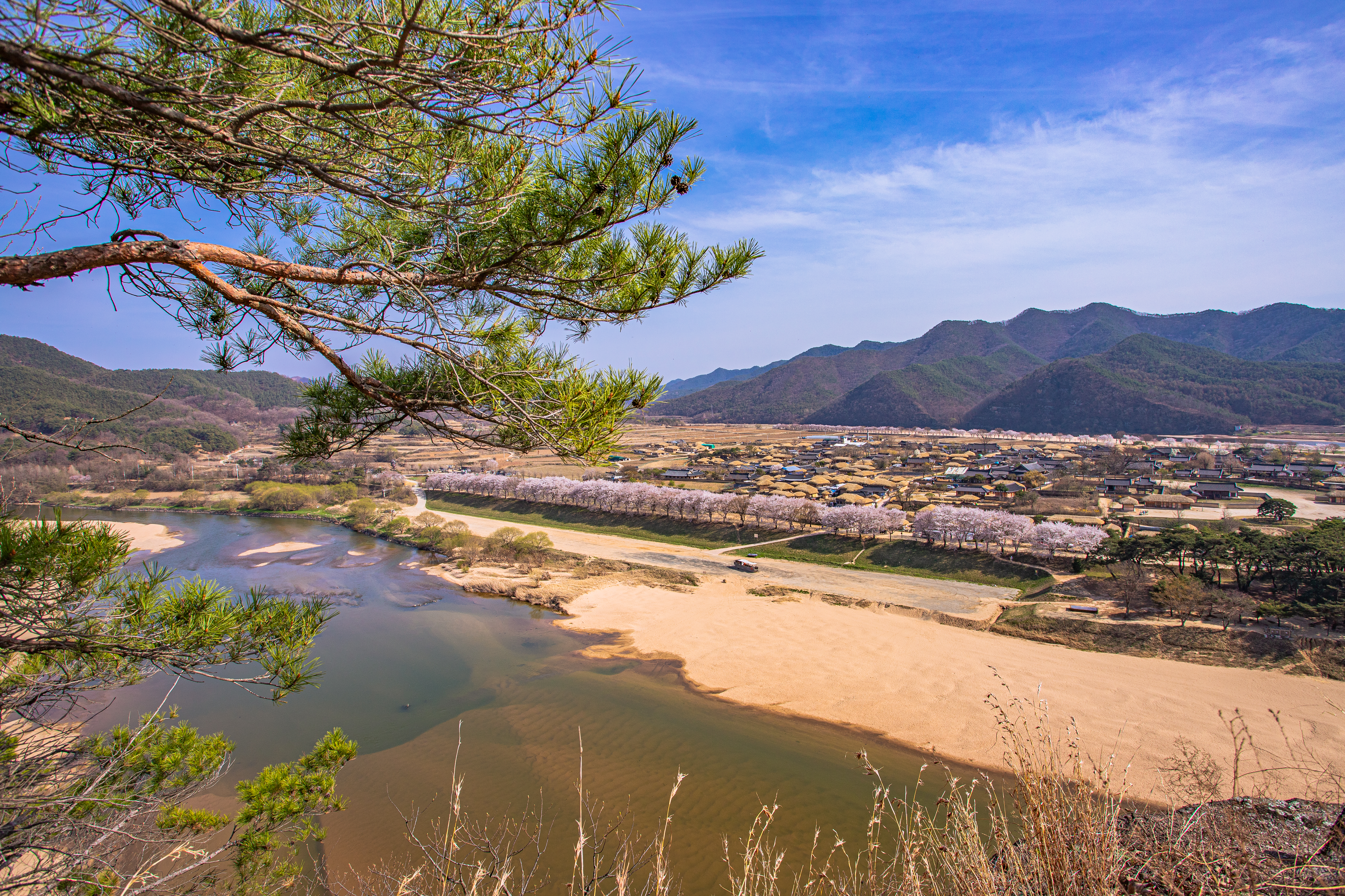 그 연꽃과 하회강변길을 따라 펴있는 벚꽃길의 아름다움.