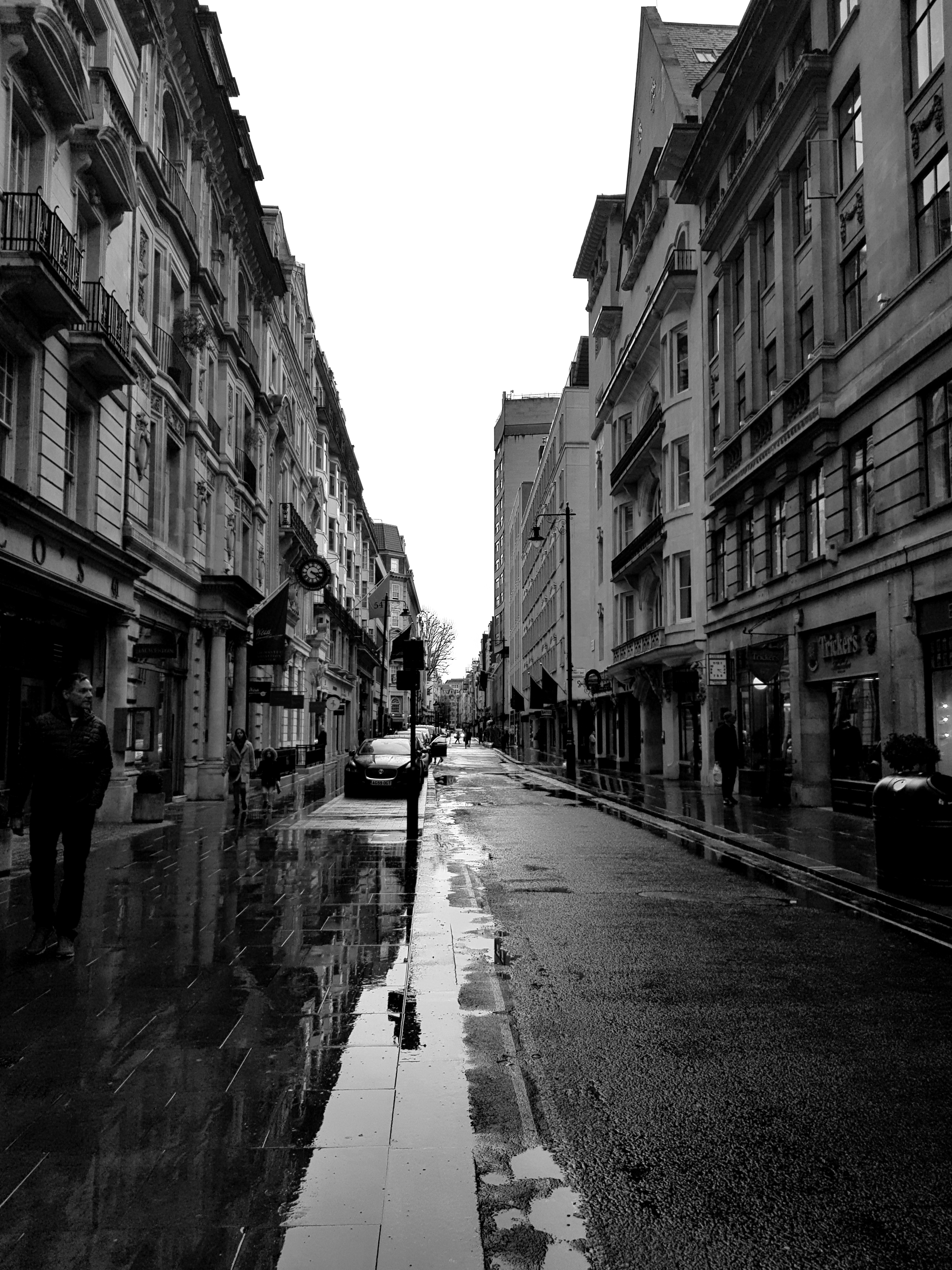 조용하게 내린 비가 그친 뒤의 런던의 거리