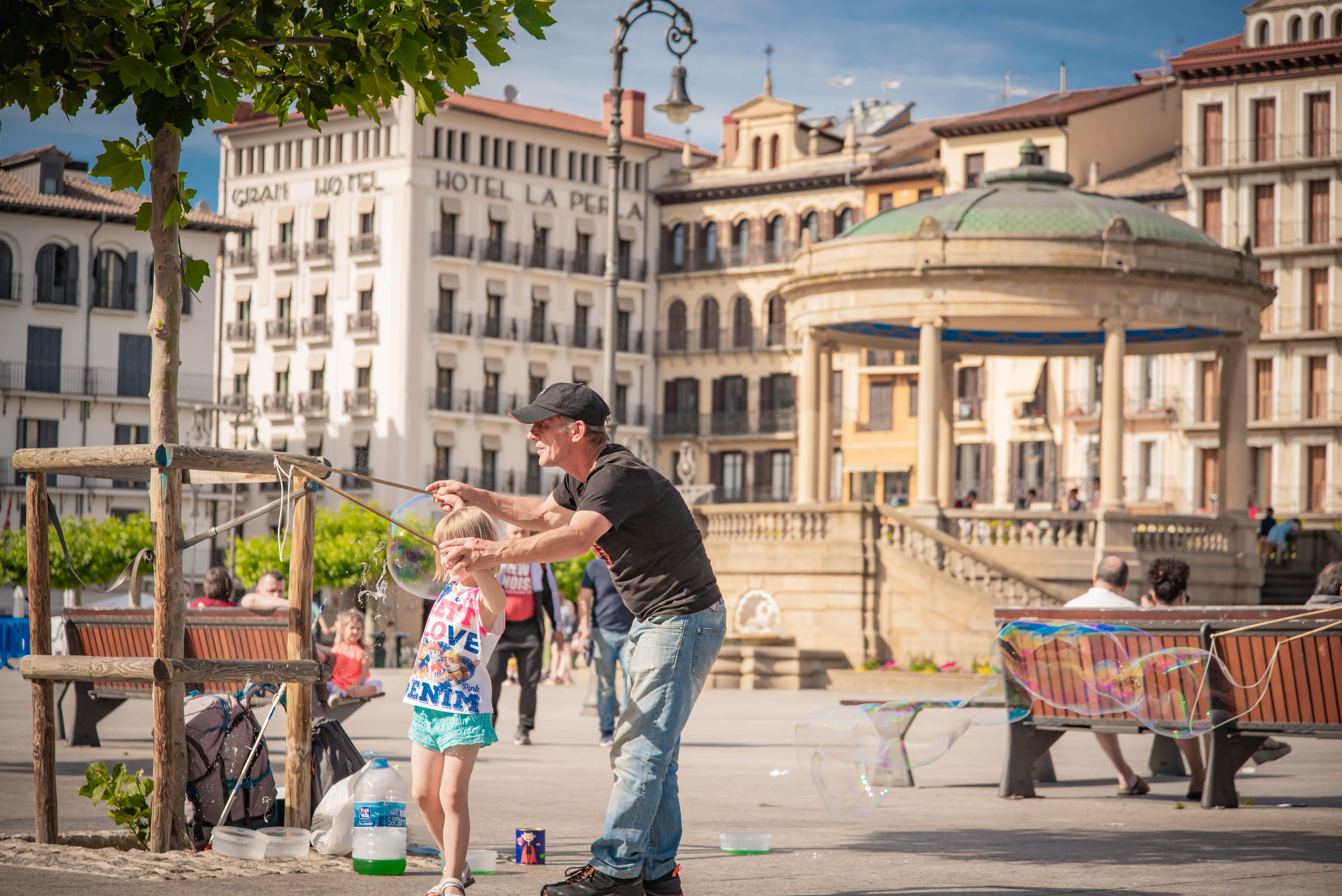 스페인 팜플로냐 광장에서 찍은 비누방울 아저씨와 어린아이 입니다.