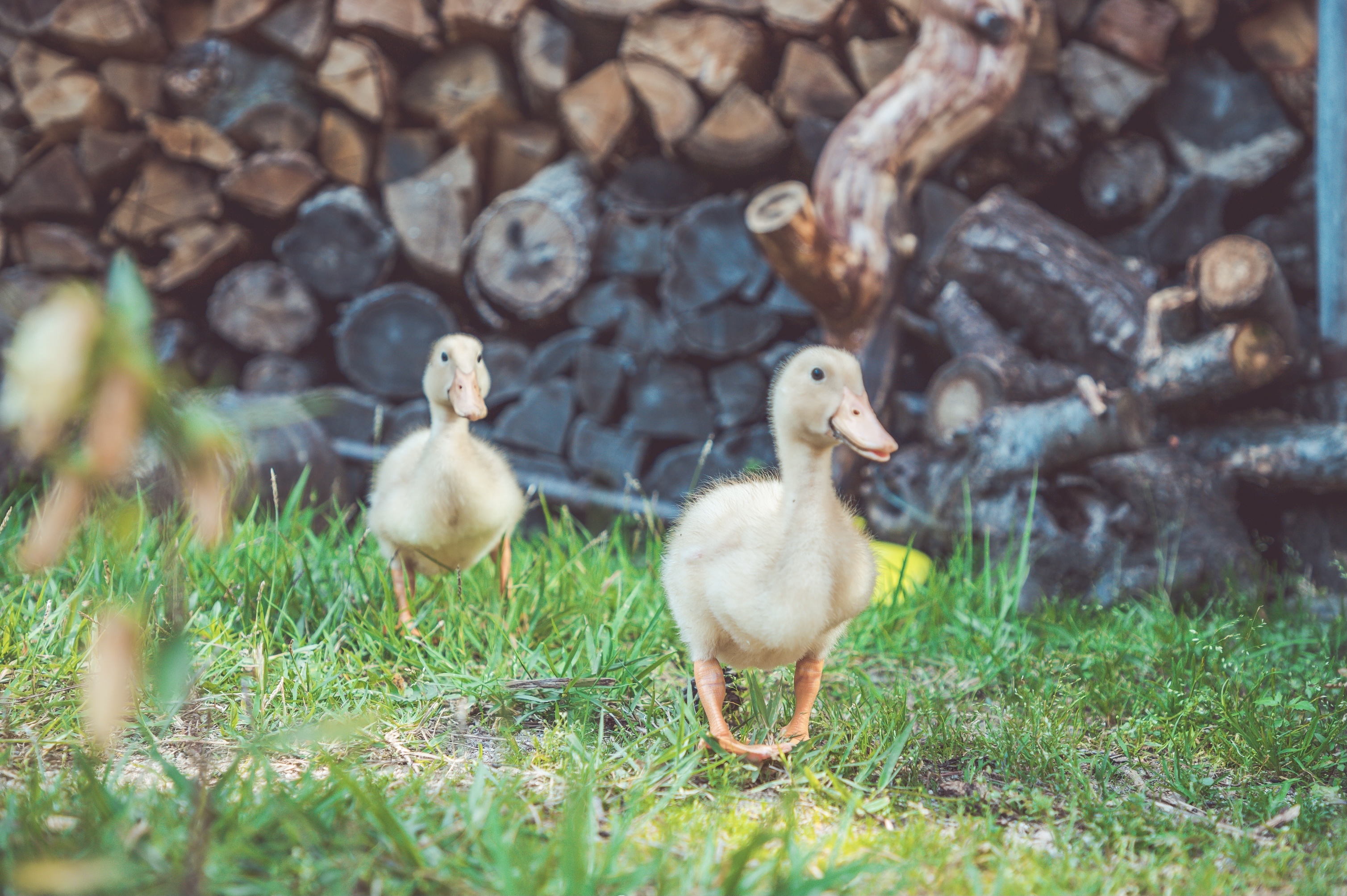 자유롭게 잔디밭을 뛰어다니는 오리형제의 모습