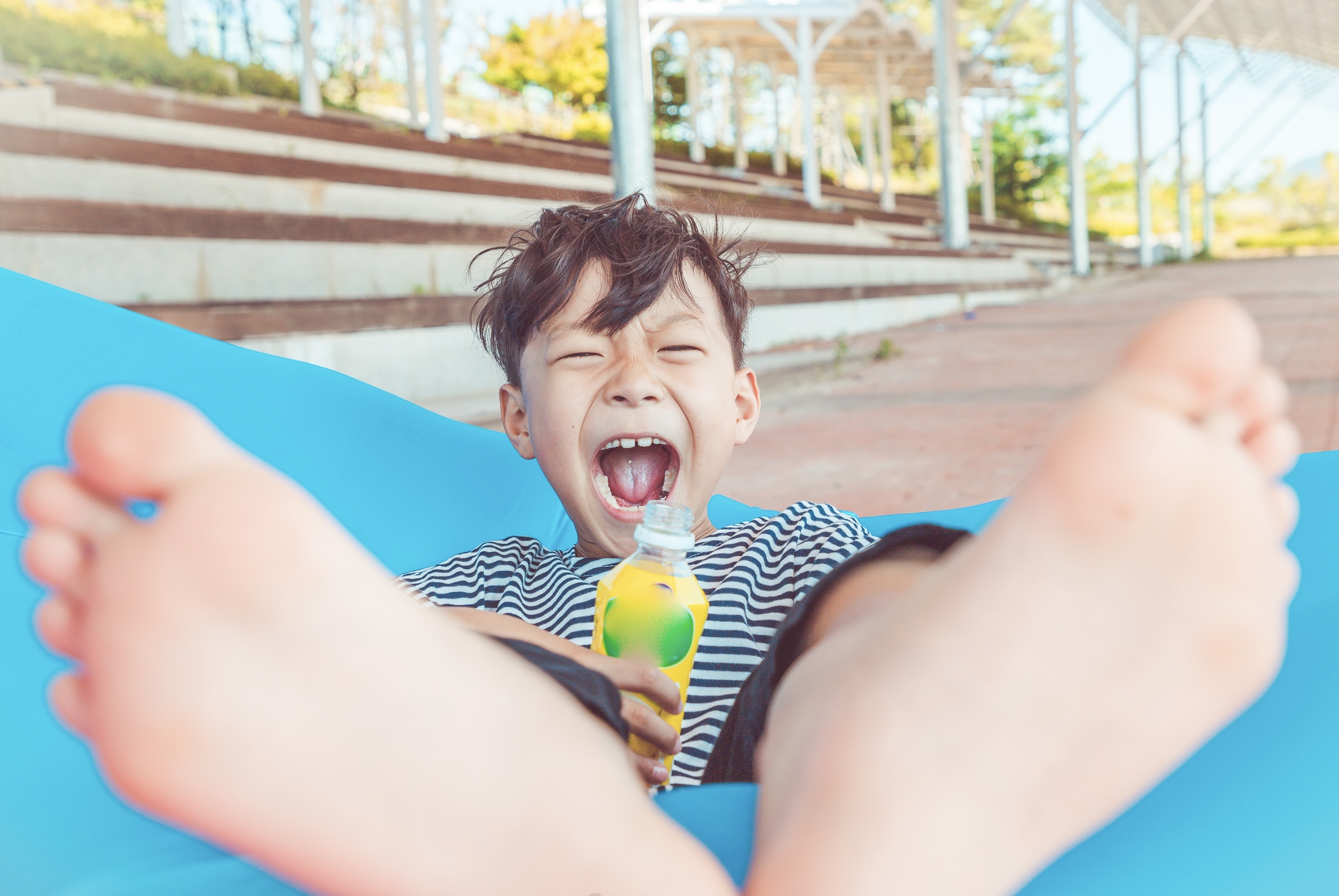 더운 여름 시원한 음료수를 마시고 포효하고 있다