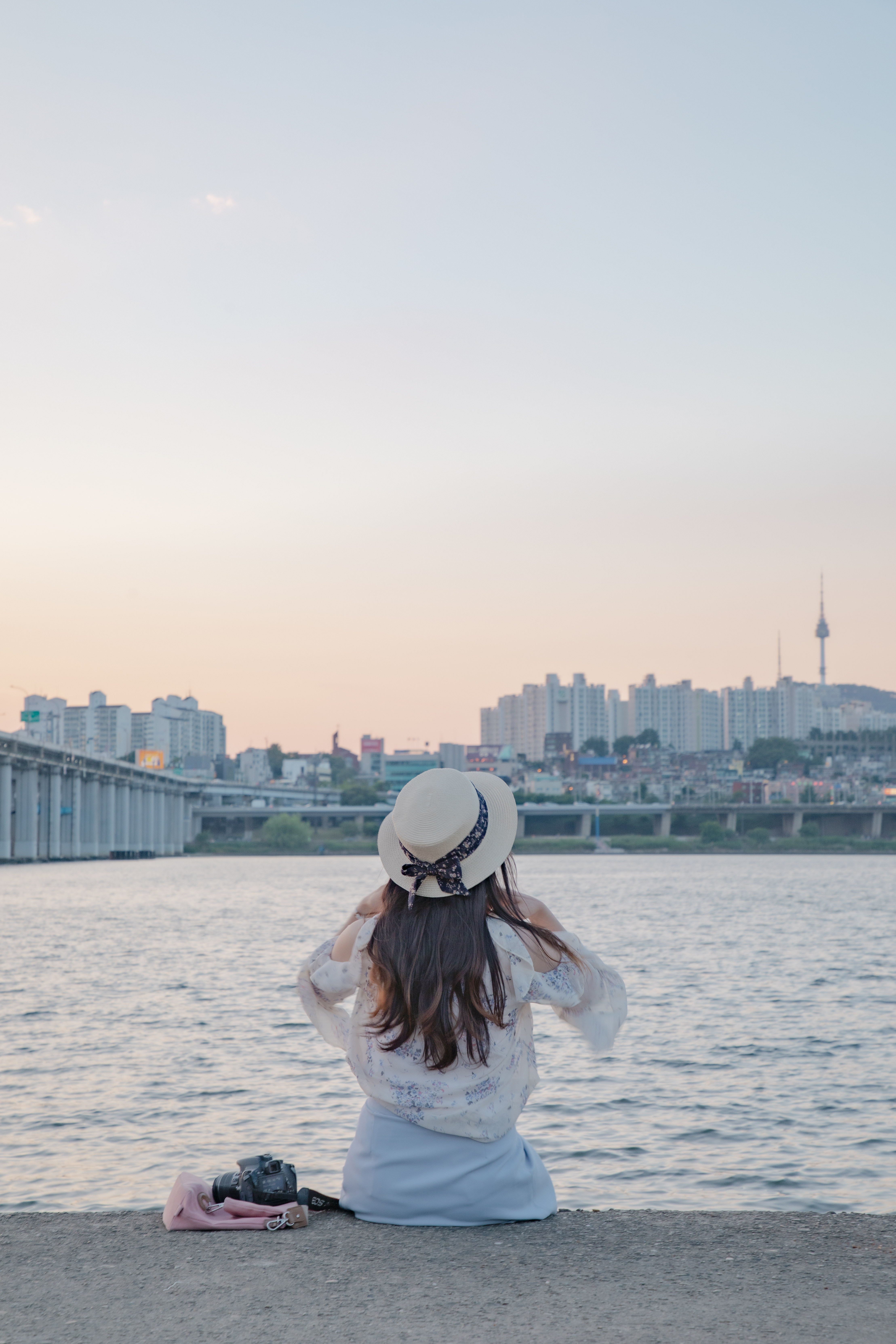 주말을 맞아 한강공원의 노을을 감상하는 모습을 담았다.