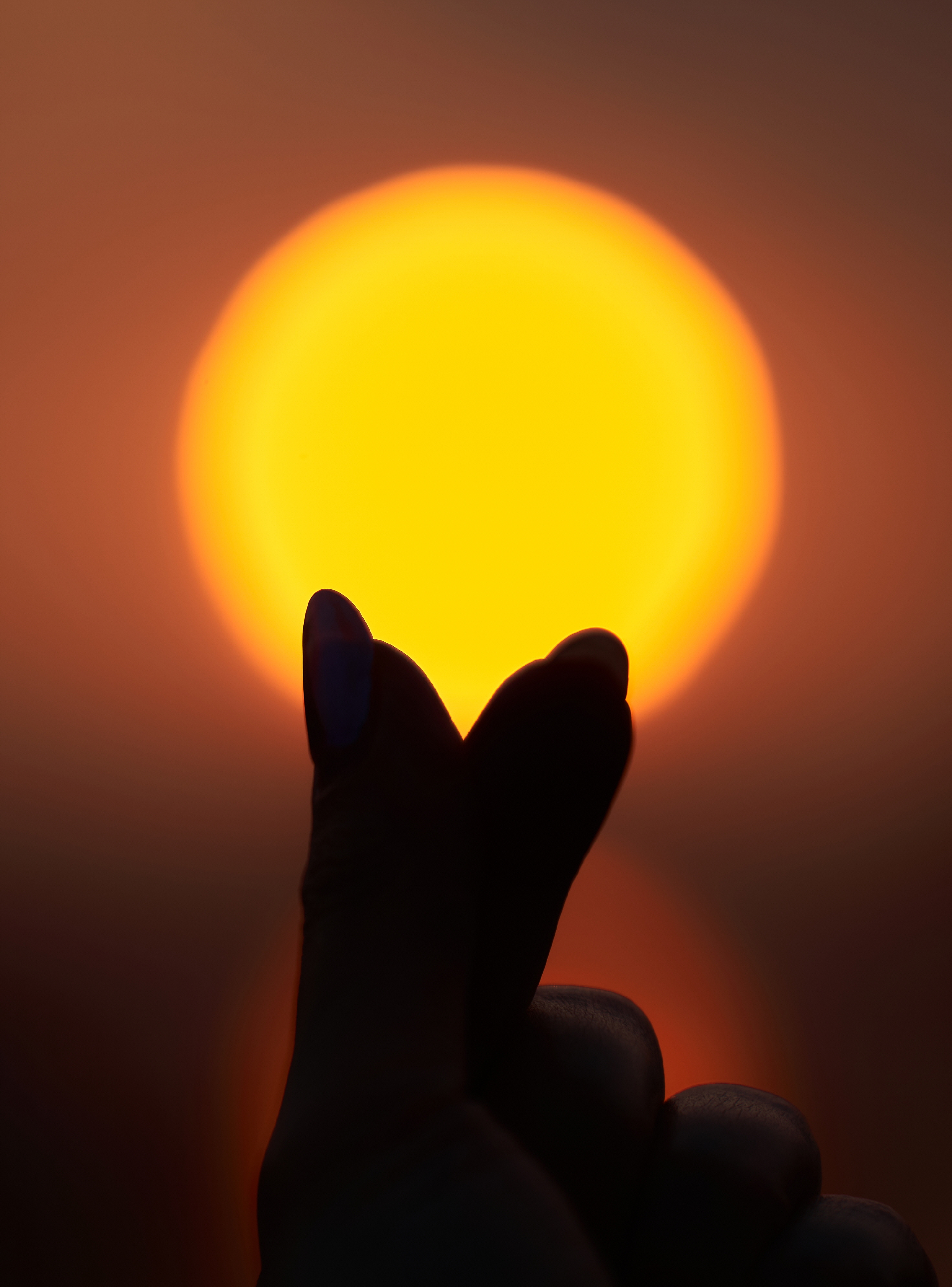 일몰을 배경으로 손하트 실루엣 촬영