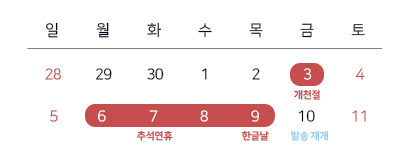 휴무일 : 2025년 10월 3일(금) ~ 10월 9일(목)