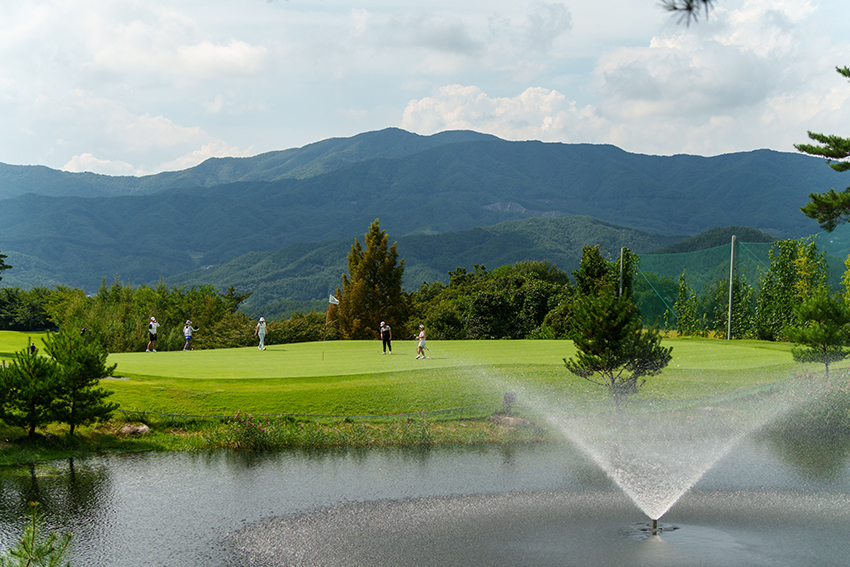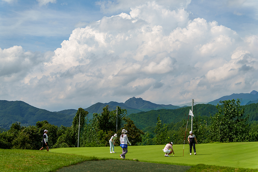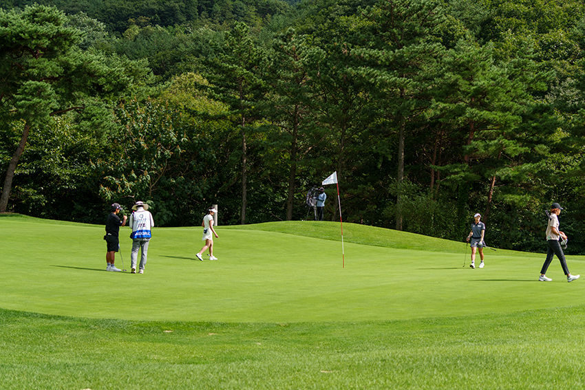 ▲ 자연을 벗삼아 멋진 경기를 펼치고 있는 드림투어 선수들.