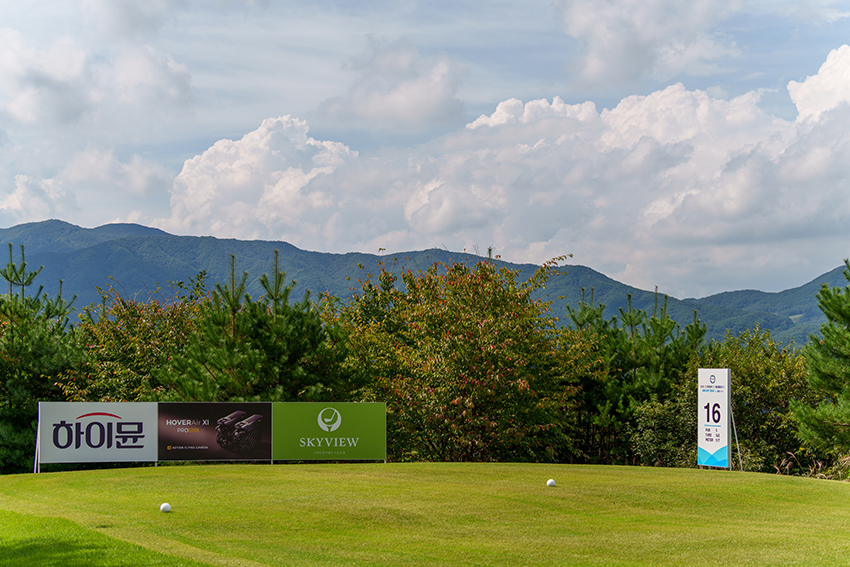 ▲ 16번홀, 작지만 강한 드론 ‘호버에어’ 광고판이 보여지네요.