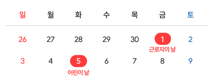 2026년 근로자의 날, 어린이날을 맞아 휴무 안내를 아래와 같이 공지하오니 참고하여 주시기 바랍니다.