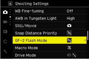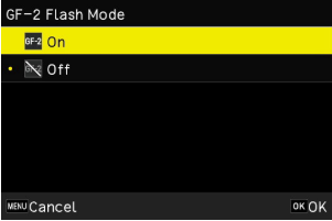 2) 펌웨어를 V1.60 이상으로 업데이트하면 카메라 메뉴에 [GF-2 Flash Mode]가 추가됩니다.