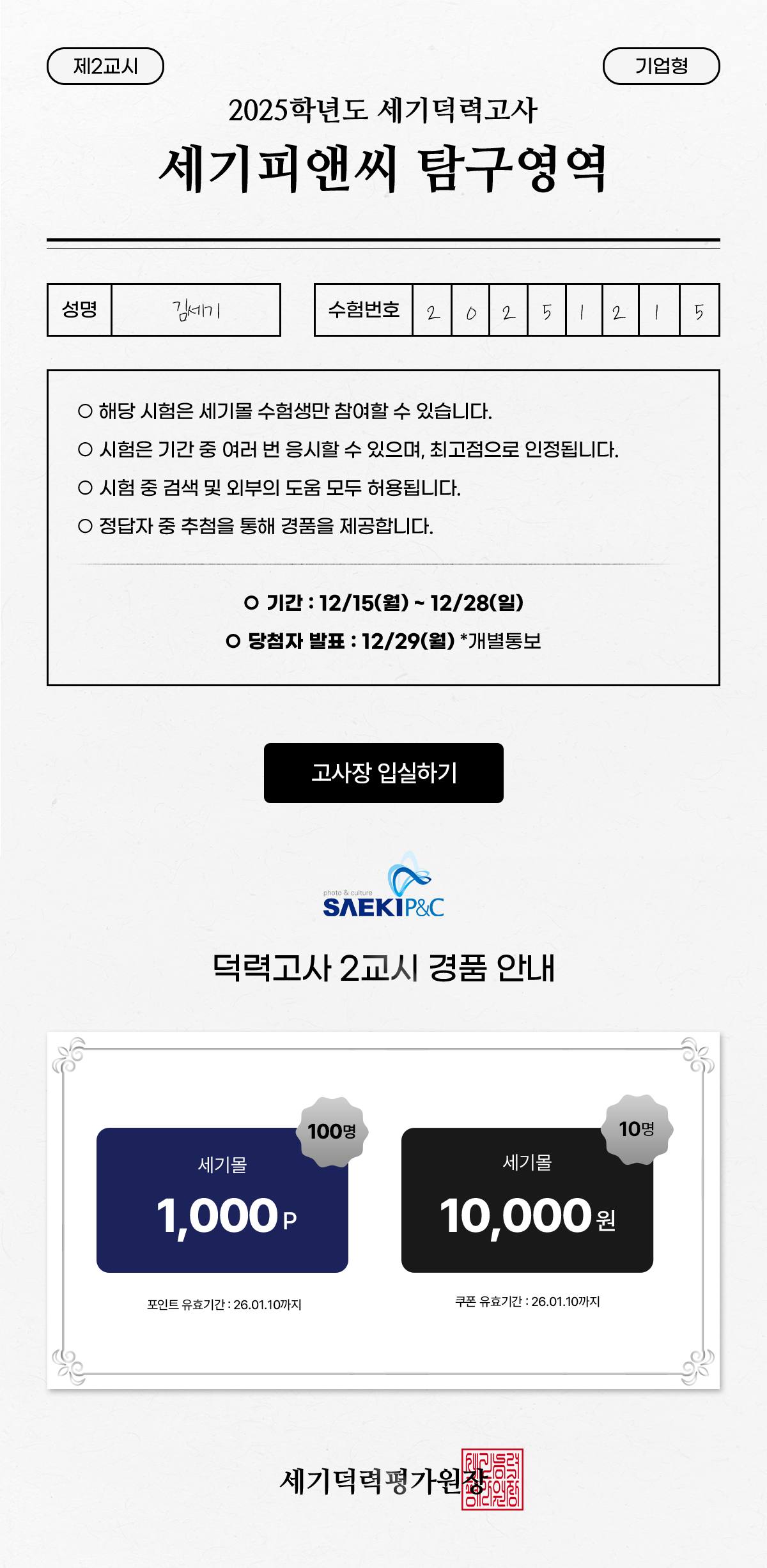 본 이벤트에 대한 문의는 세기몰 1:1 게시판 및 02-3668-3114 대표번호로 하실 수 있습니다.