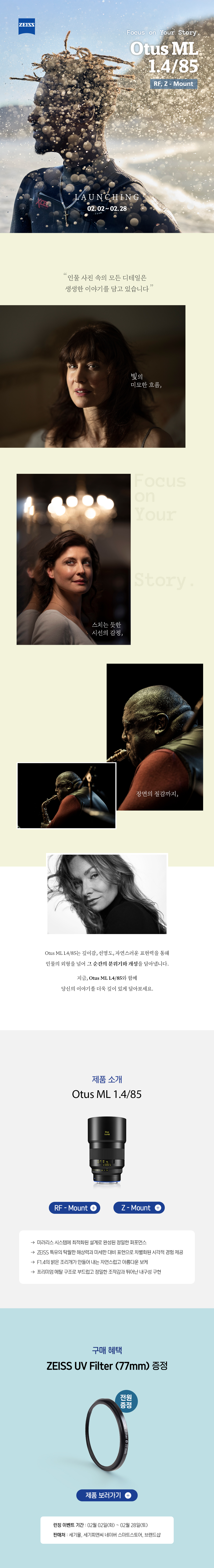 2. 본 이벤트는 ZEISS Otus ML 1.4/85 런칭 이벤트 기간에 구매한 분들께 제공되는 혜택입니다.