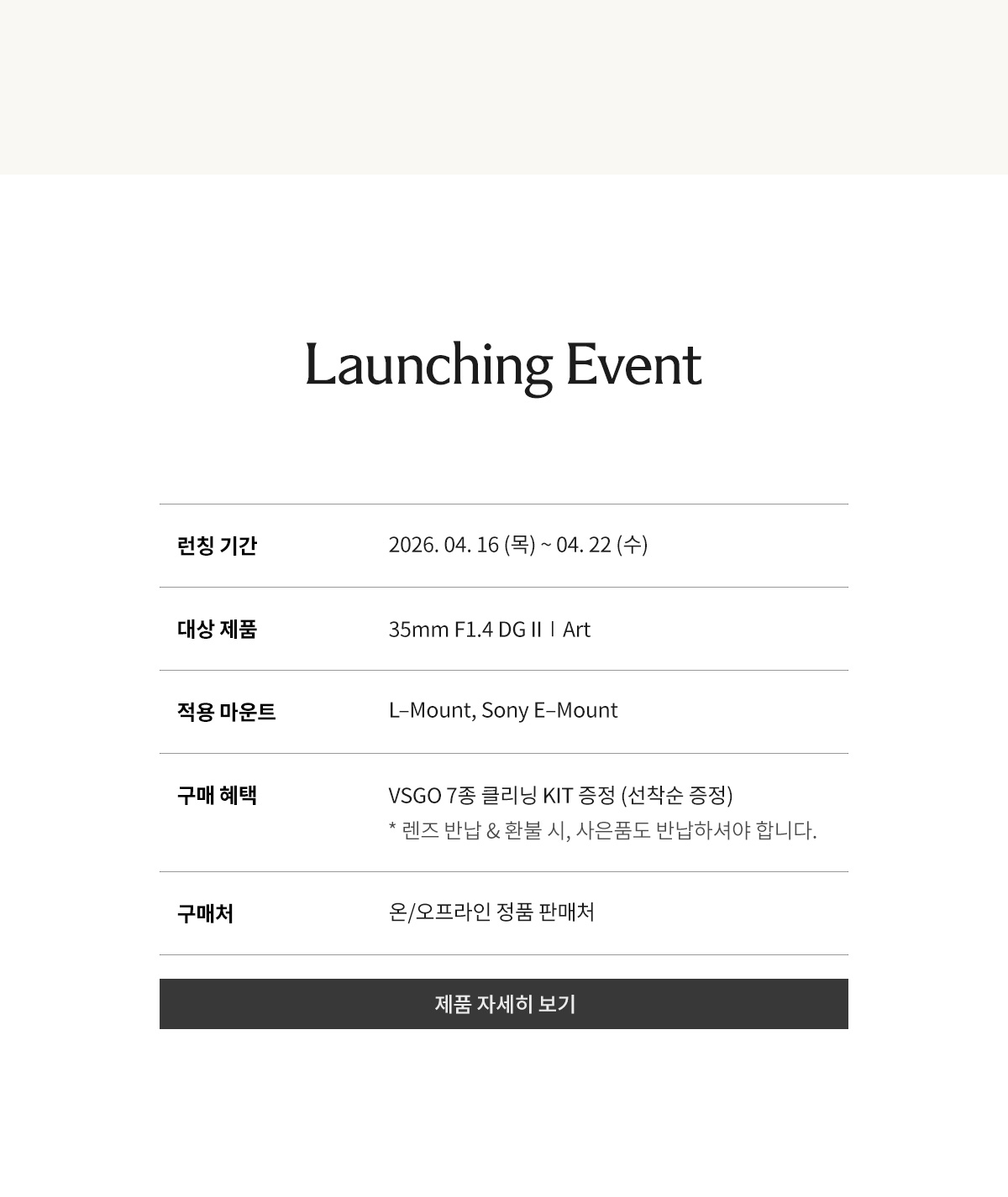 SIGMA 35mm F1.4 DG II | Art 런칭2026.04.16 ~ 2026.04.22