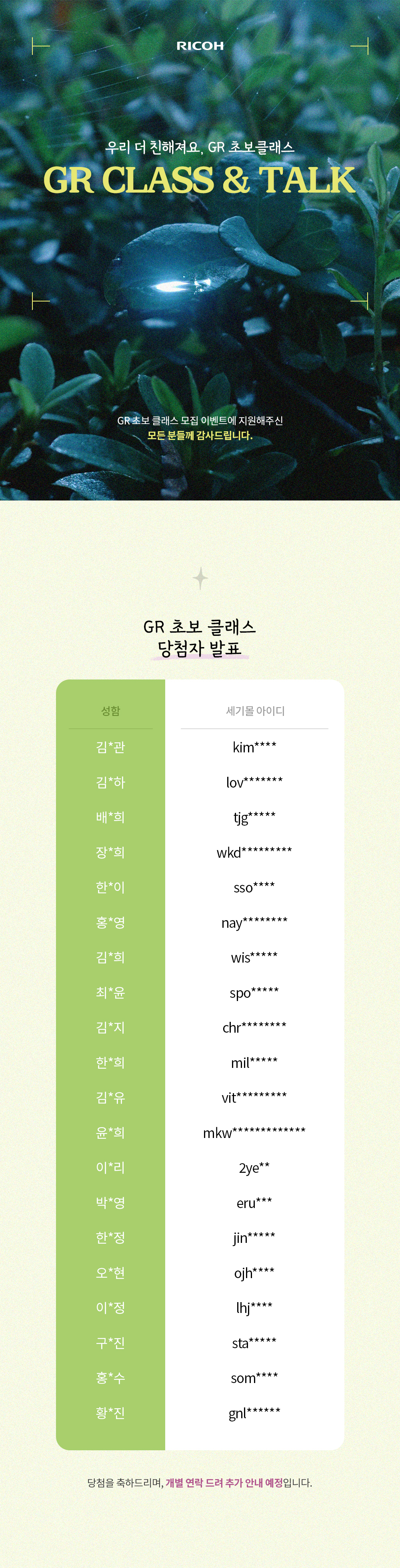 리코 GR 초보 클래스 모집 이벤트 당첨자 발표