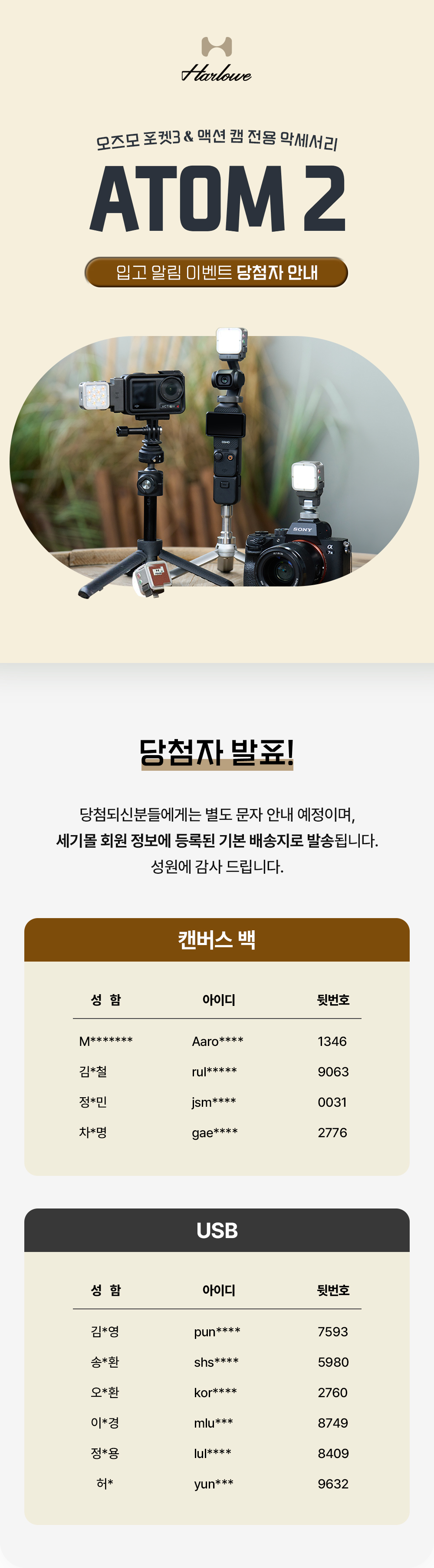 할로우 ATOM 2 입고 알림 이벤트 당첨자 발표