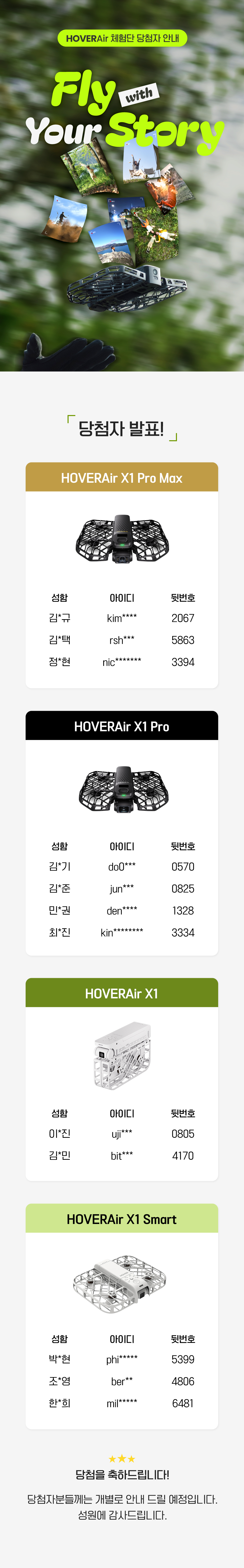 HOVERAir 체험단 이벤트 당첨자 발표