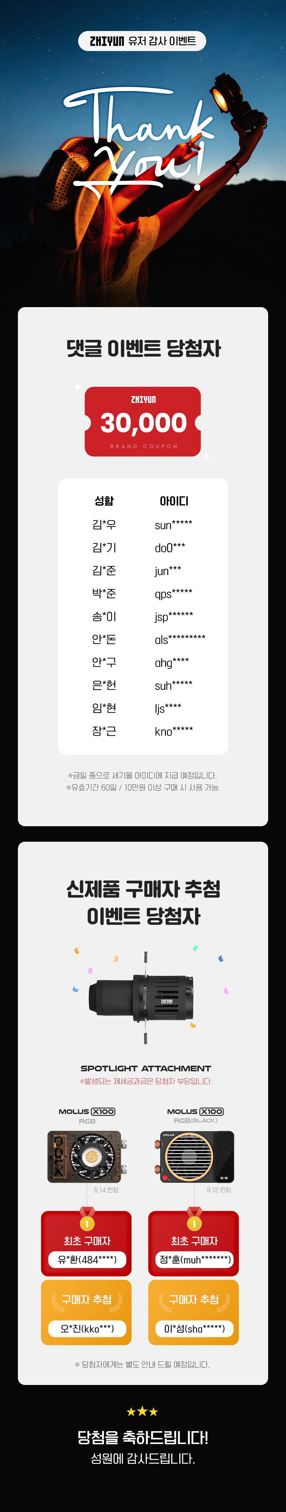 ZHIYUN 유저 감사 이벤트 당첨자 발표
