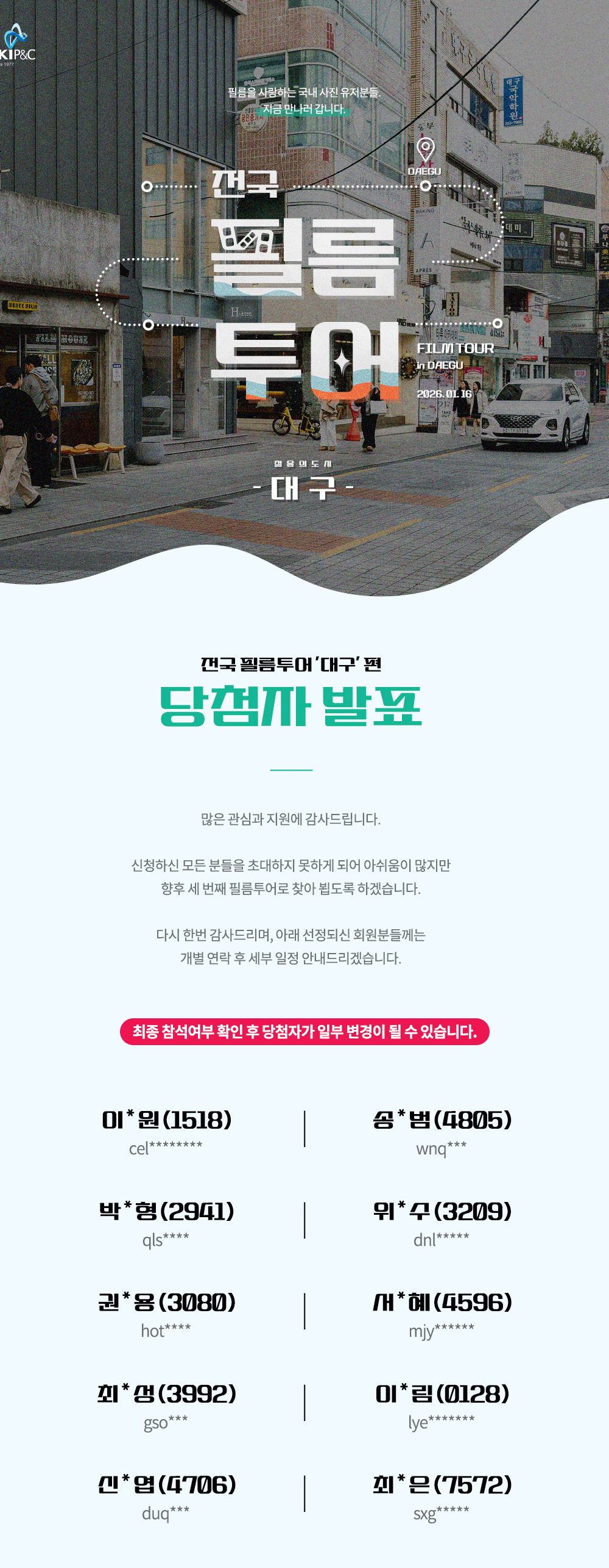 전국 필름투어 '대구' 당첨자 발표