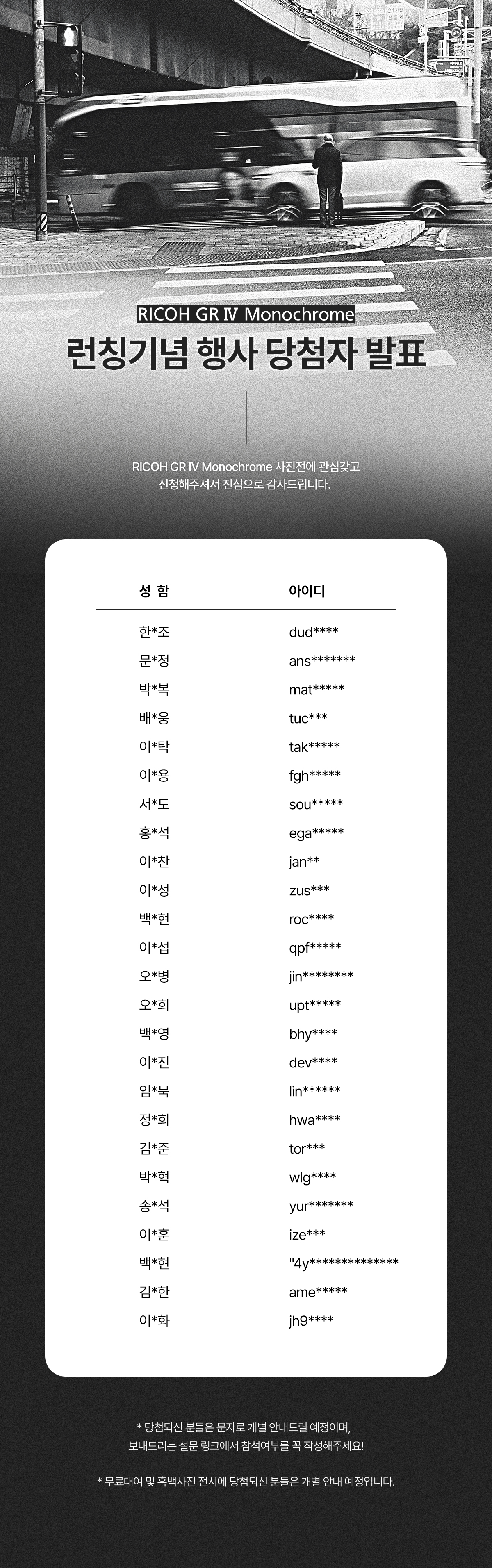 GR IV Monochrome 런칭 이벤트 당첨자 공지
