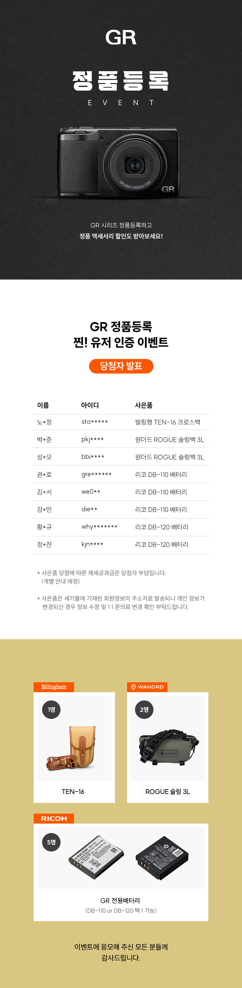 RICOH GR 정품등록 이벤트 당첨자 발표