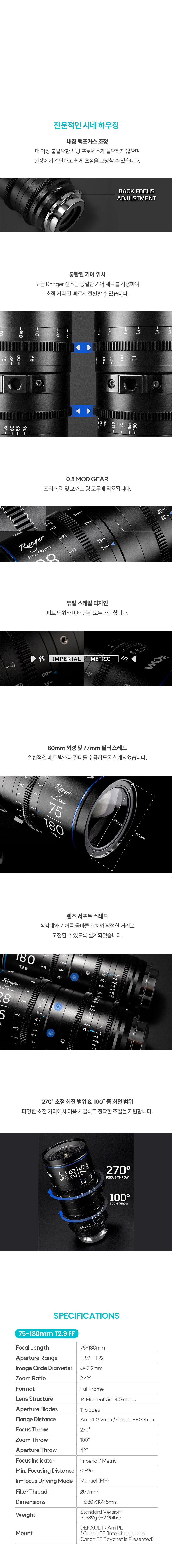 | 품명 및 모델명 | Laowa Ranger 75-180mm T2.9 FF Cine Lens |