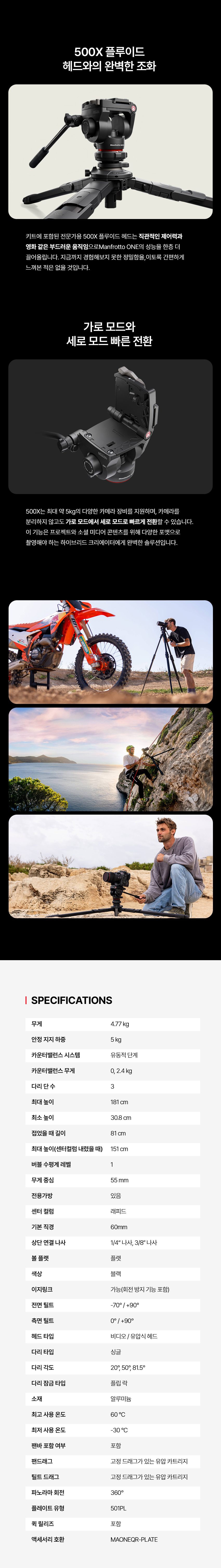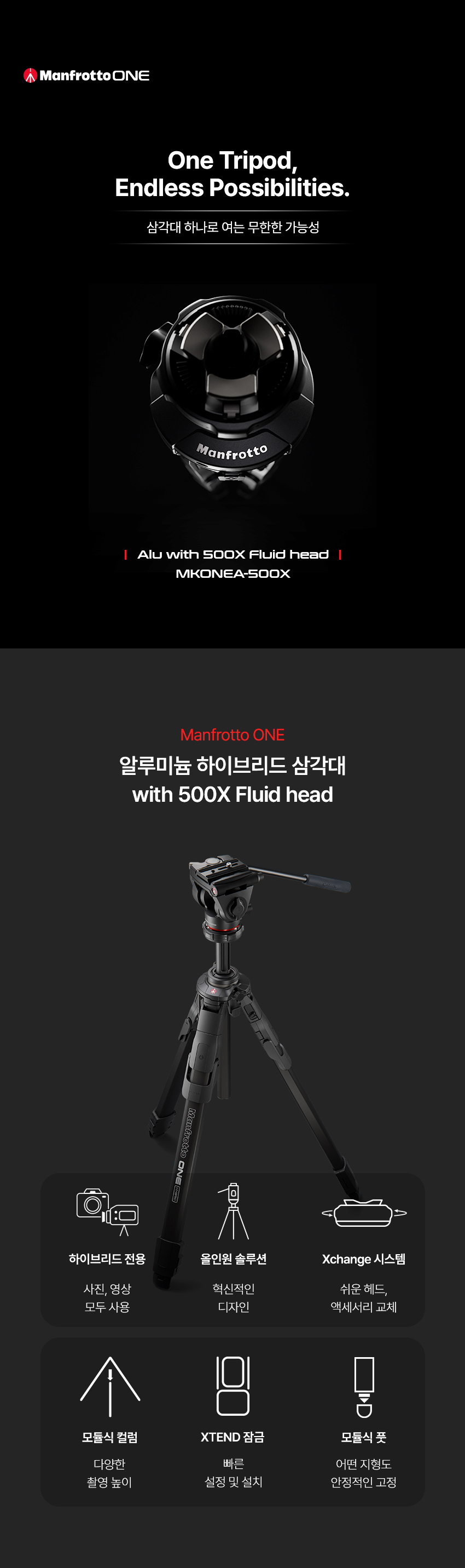 전체보기| 종류 | Manfrotto ONE 알루미늄 하이브리드 삼각대 키트(500XAH) |