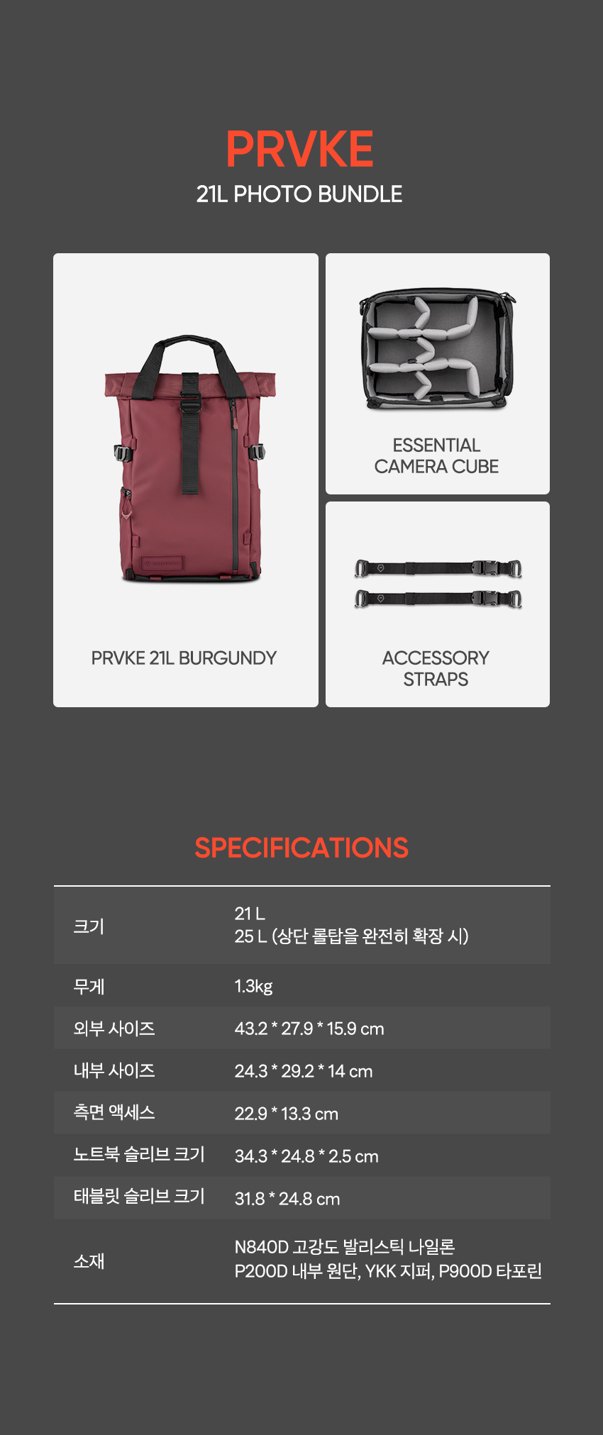 | 종류 | PRVKE 21L Photo Bundle (Burgundy)_V4 |