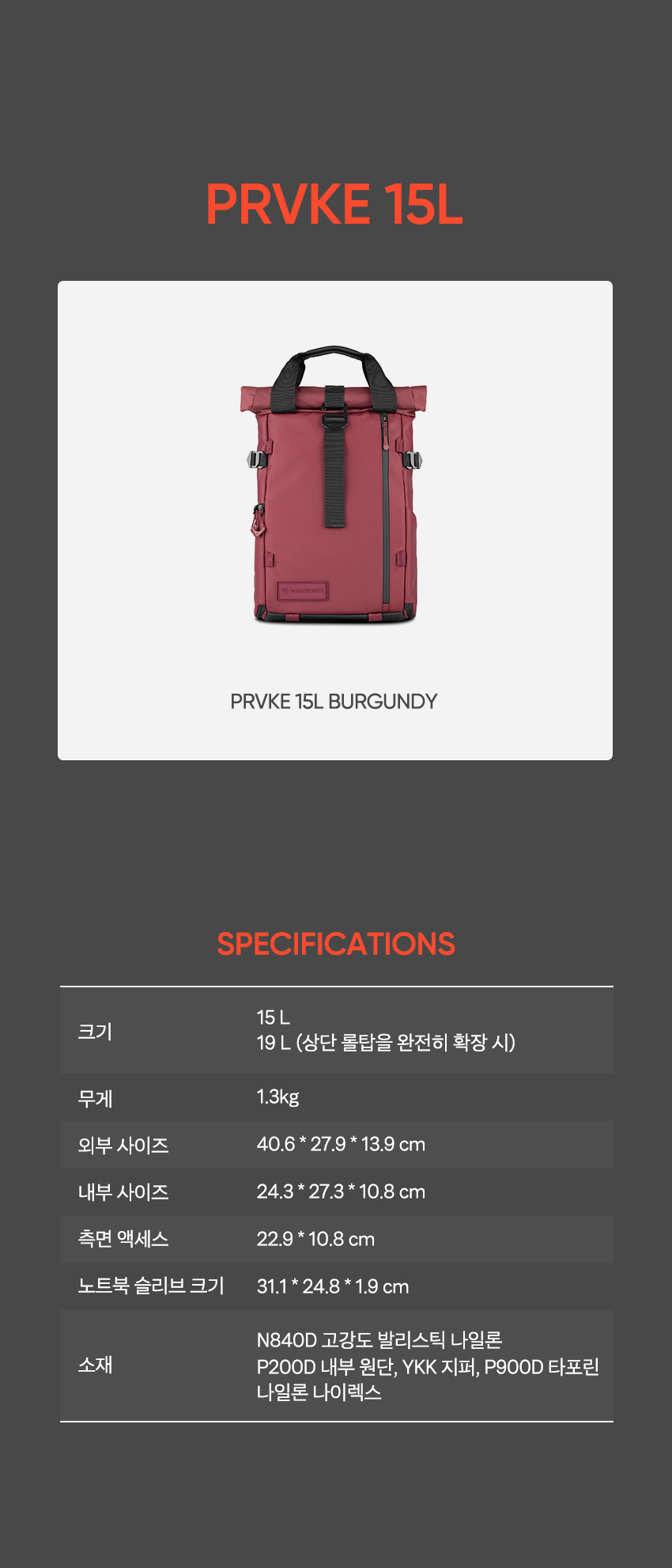 | 종류 | PRVKE 15L (Burgundy)_V4 |